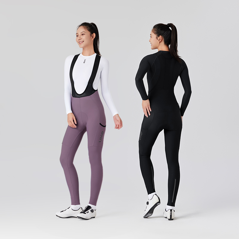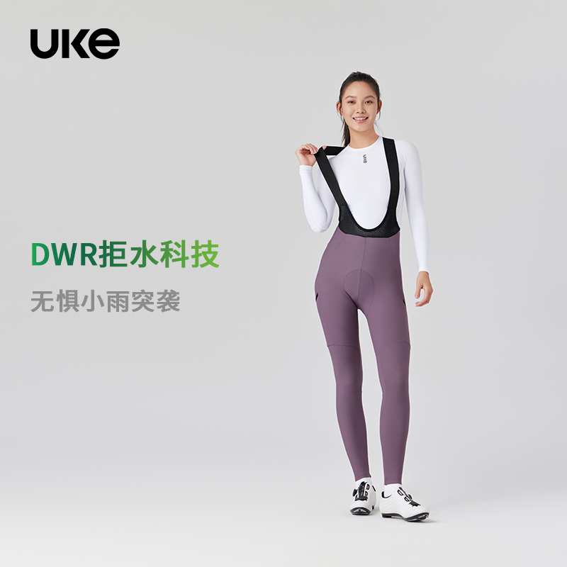 UKE骑行裤女子抓绒保暖储物背带骑行长裤秋冬新款公路自行车青也