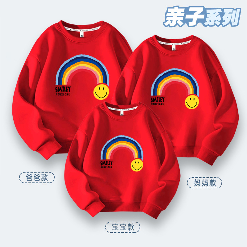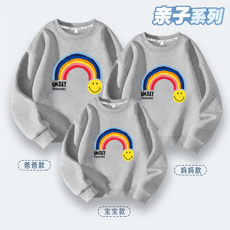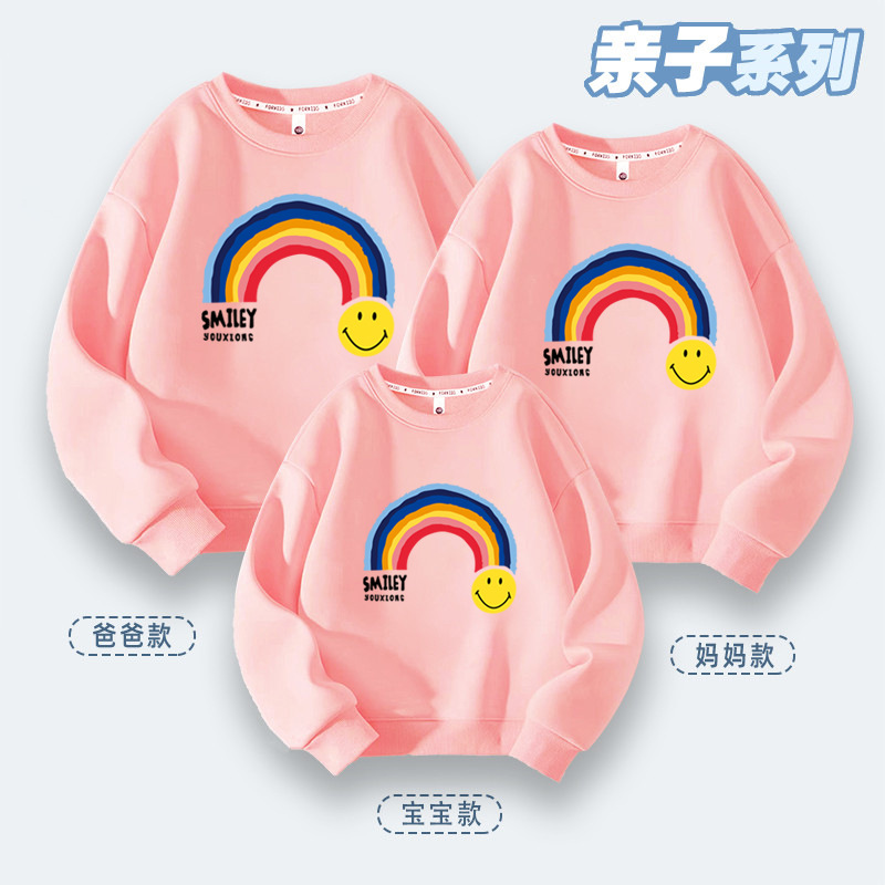 亲子活动班服七彩虹亲子装秋冬季上新款笑脸卫衣小学生运动会服
