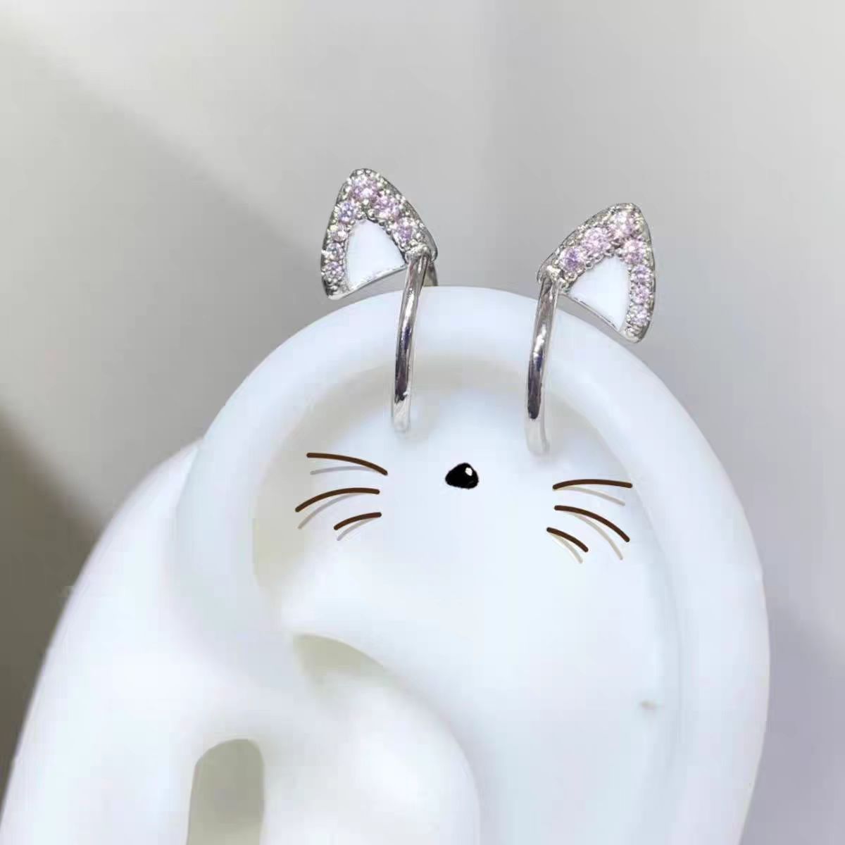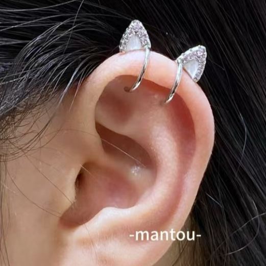 耳骨夹可爱猫耳朵滴油爆闪耳轮夹无耳洞恶魔钉耳环耳饰女