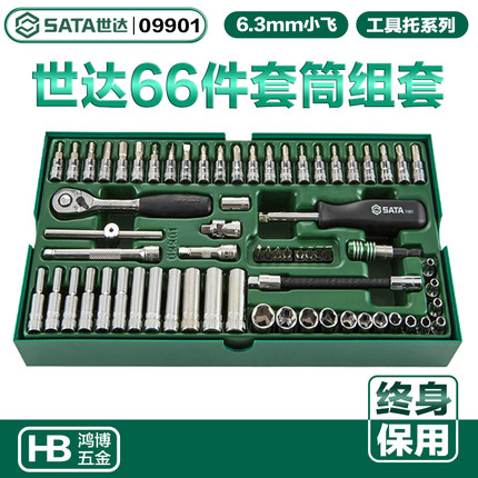SATA世达66件6.3MM系列套筒扳手工具托工具车维修组合套装09901
