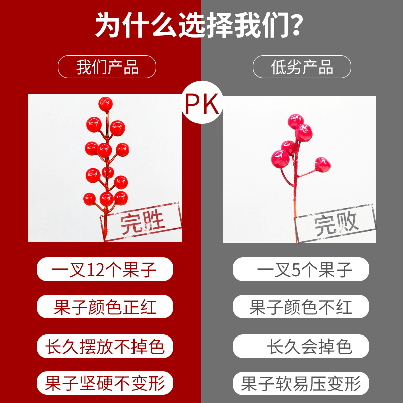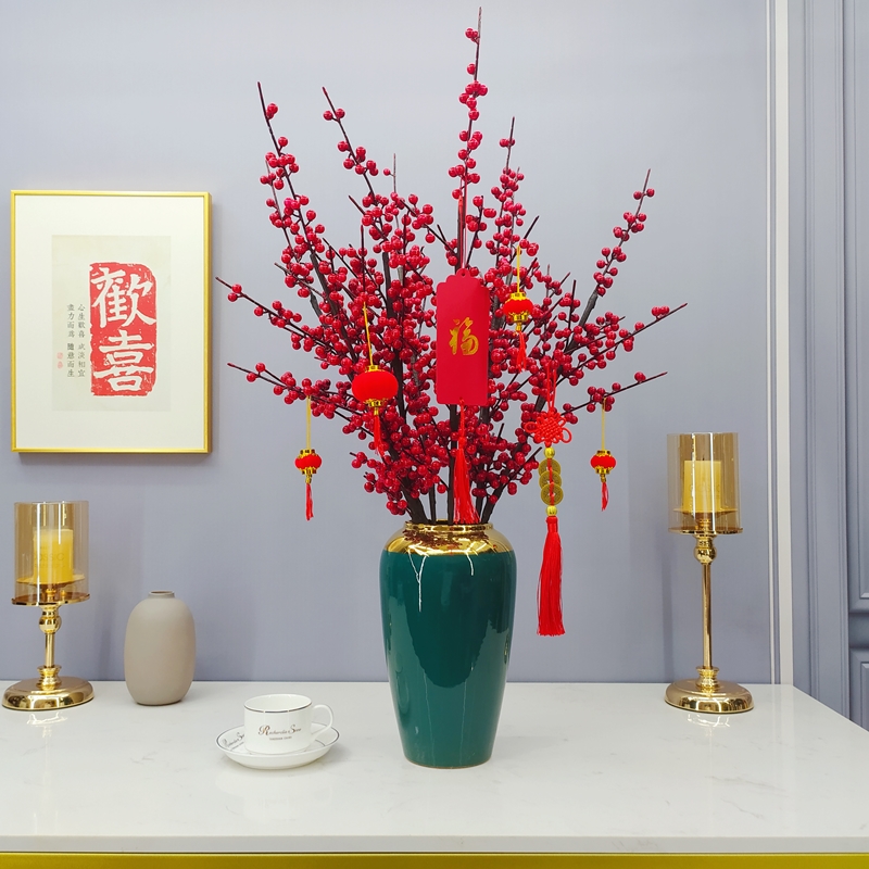 发财果红色红果冬青果假花仿真花摆设客厅新年装饰花婚庆花艺摆件