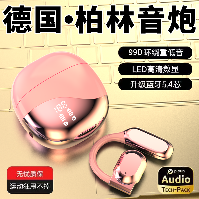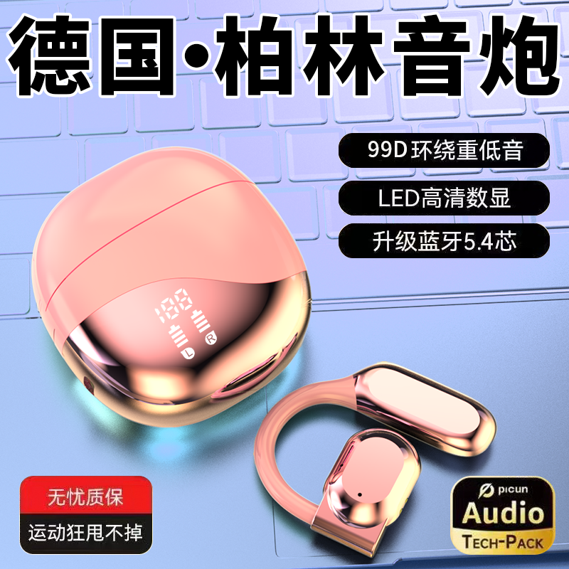 影巨人新品超长续航骨传导蓝牙耳机无线挂耳式运动高音质女生粉