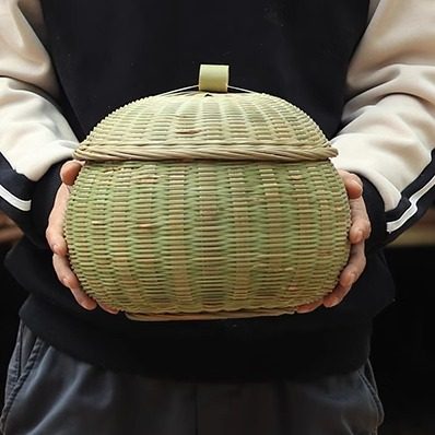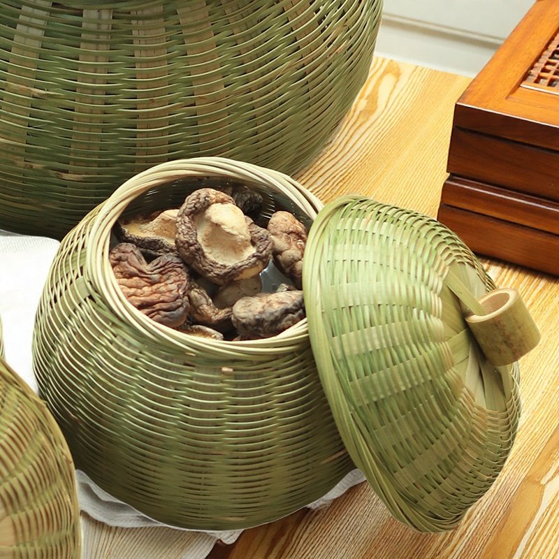 竹编制品鸡蛋篮零食篮家用收纳筐带盖子茶叶罐水果南瓜篮创意竹筐