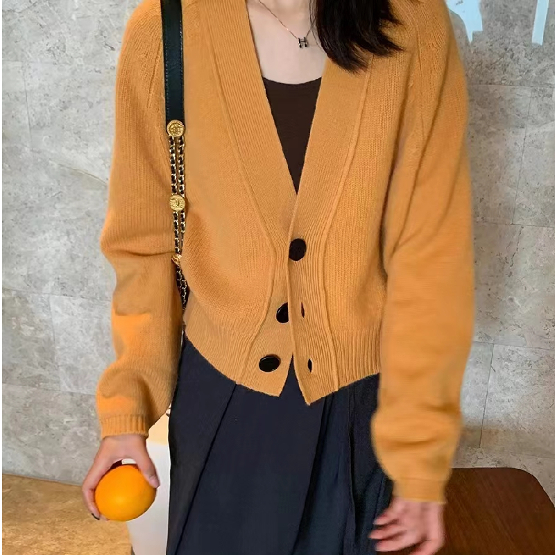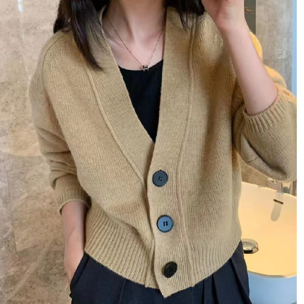 东莞大朗开衫外套女针织打底衫V领2025年春季新款外搭短款毛衣女