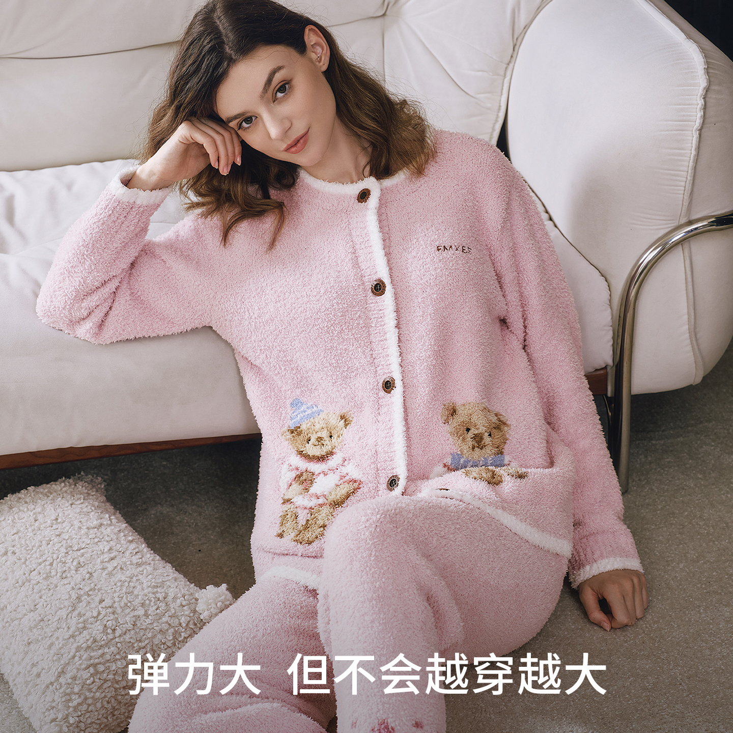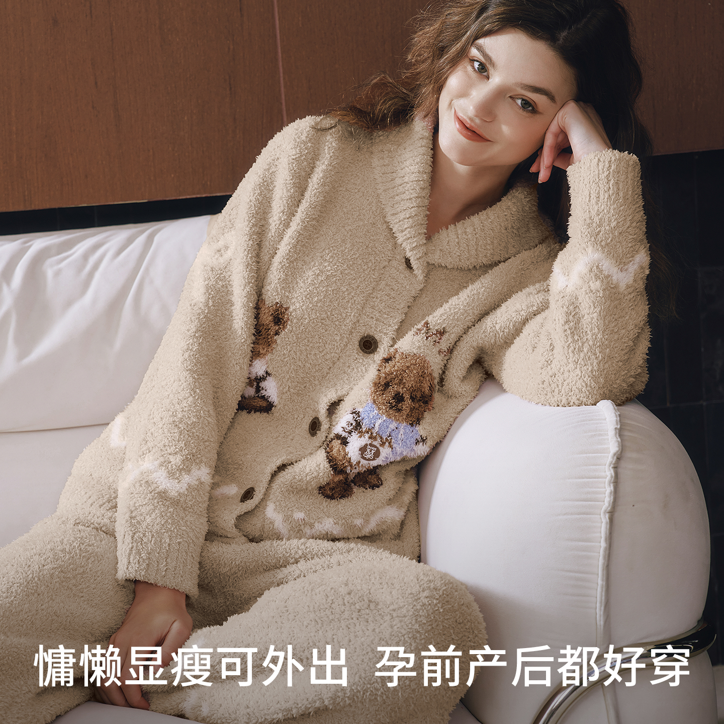 嫚熙秋冬月子服牛油果半边绒孕妇加厚加绒产妇哺乳睡衣产后家居服