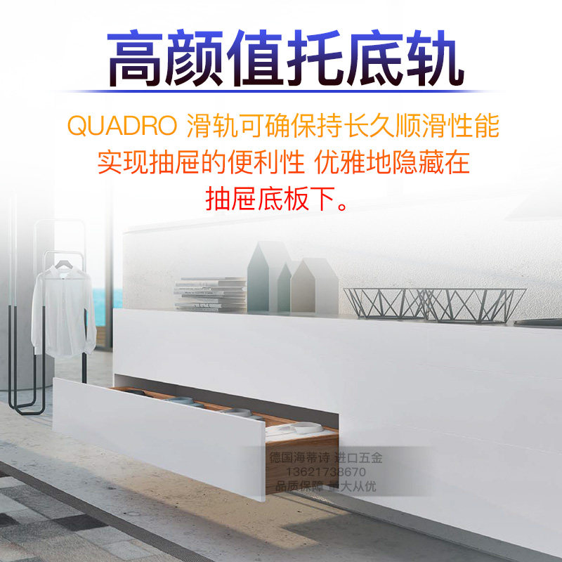 hettich海蒂诗托底轨道全拉阻尼缓冲抽屉轨滑道隐藏静音德国品牌