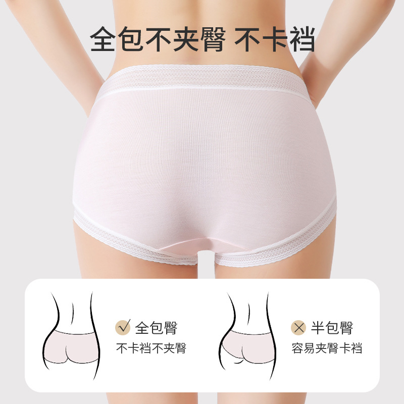 中腰大版莫代尔无痕内裤女士蚕丝裆平角5A抑菌透气夏少女式短裤头
