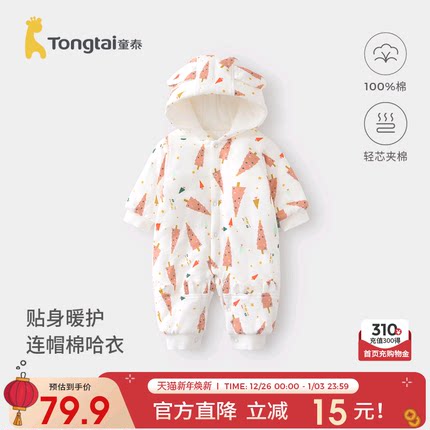 童泰婴儿连体衣宝宝加厚连帽哈衣