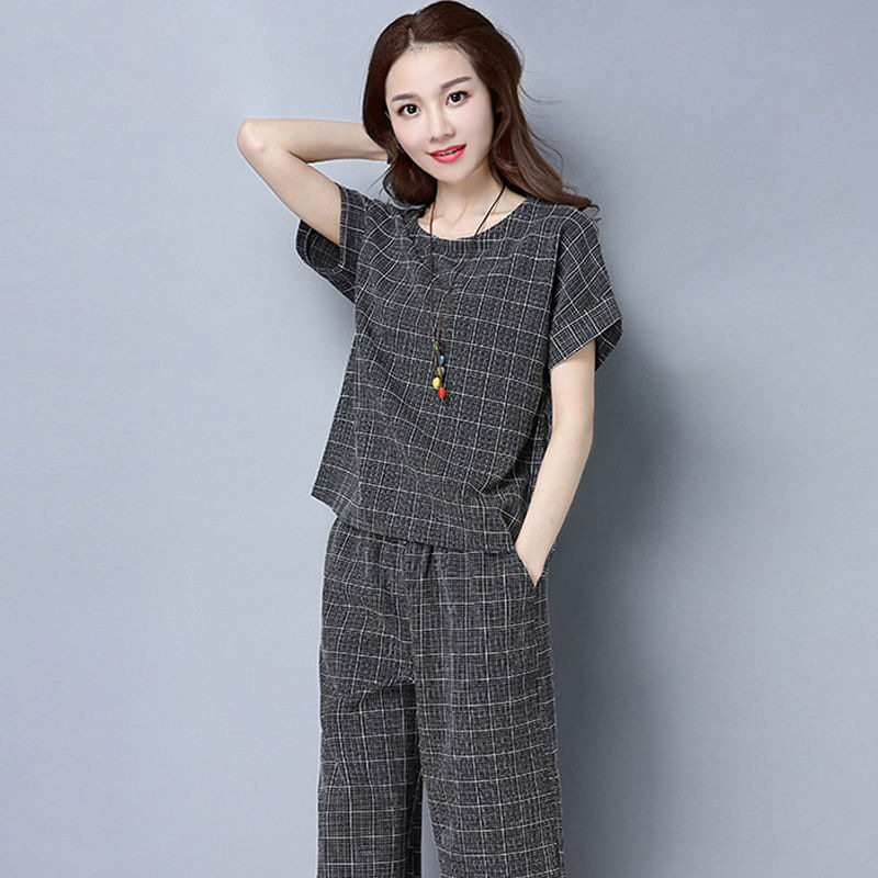 阔腿裤套装女短袖2023春夏季新款韩版休闲宽松显瘦大码女装两件套