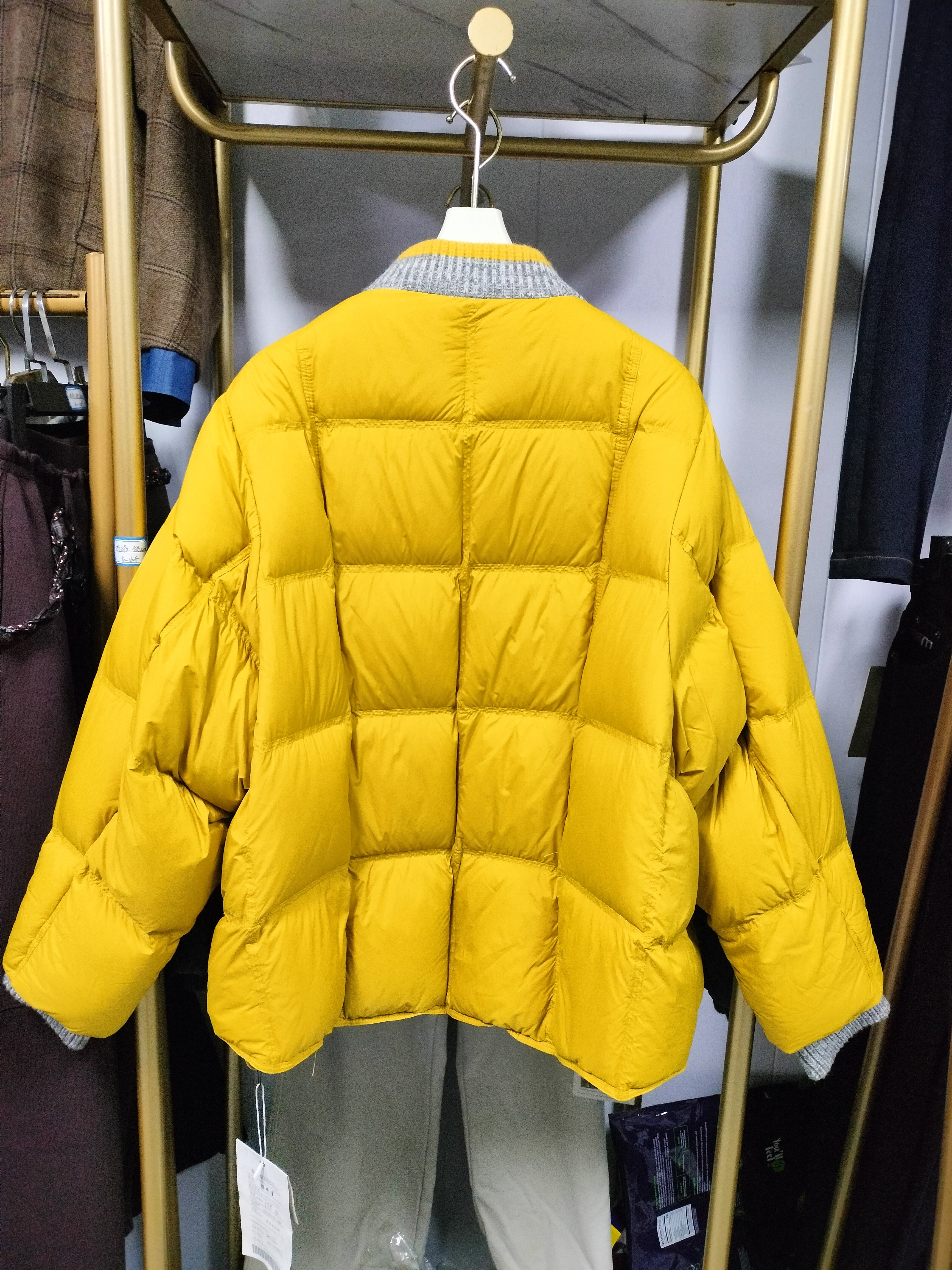 2026年欧洲站新款泡芙时尚百搭简约圆领宽松版拼色针织拼接羽绒服