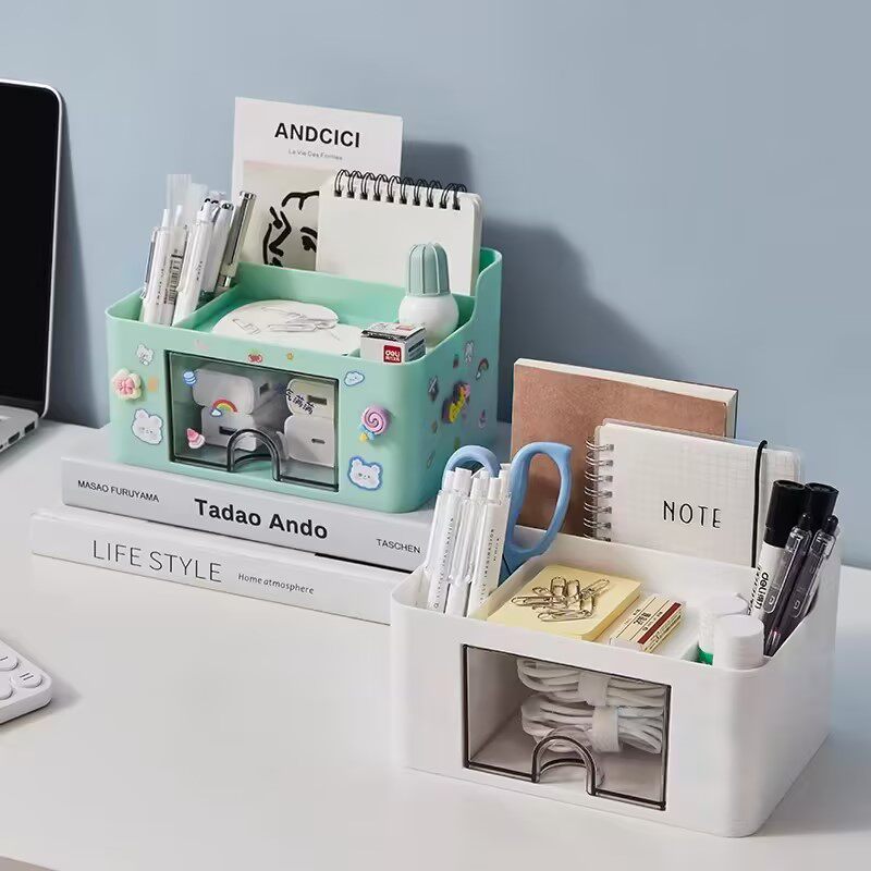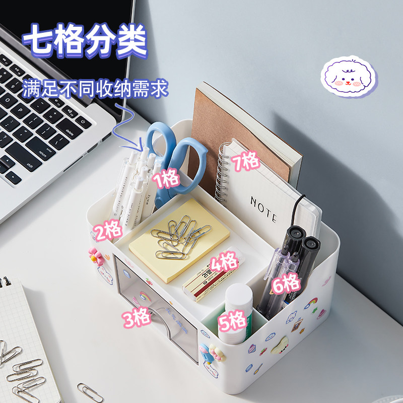 笔筒文具收纳盒抽屉分格大容量可爱儿童女孩小学生桌面文具整理盒