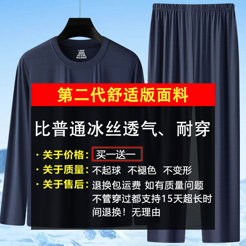申本夏装休闲套装冰丝中老年男士