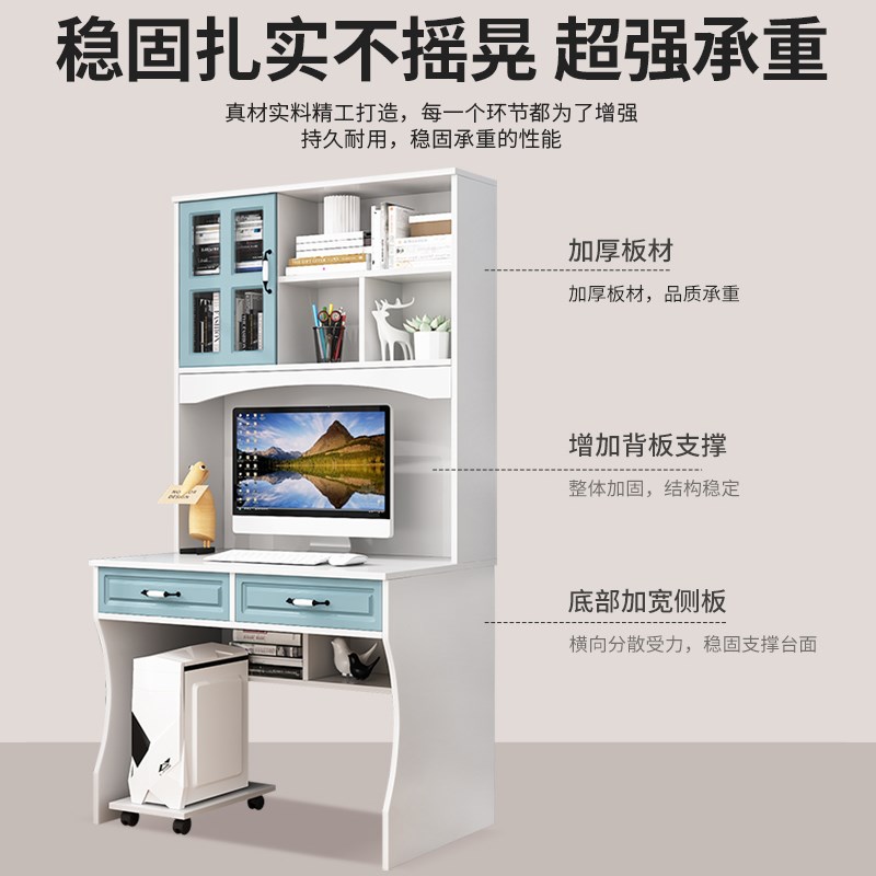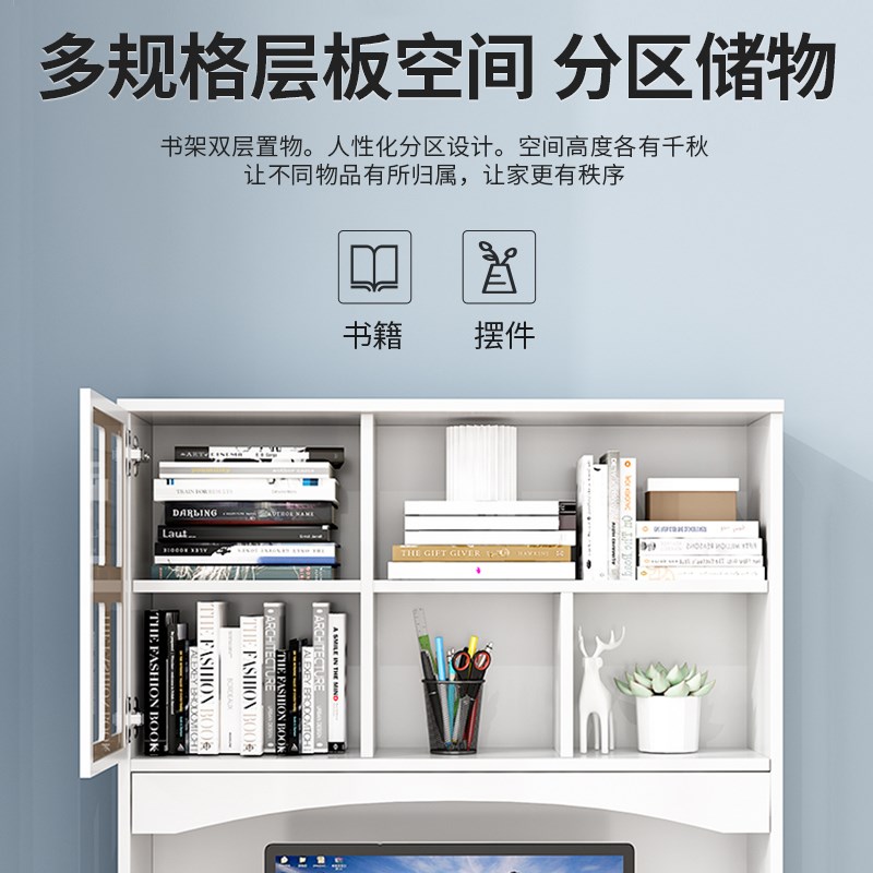 电脑桌家用书柜书桌一体书架组合女孩卧室桌子学生小户型写字书台