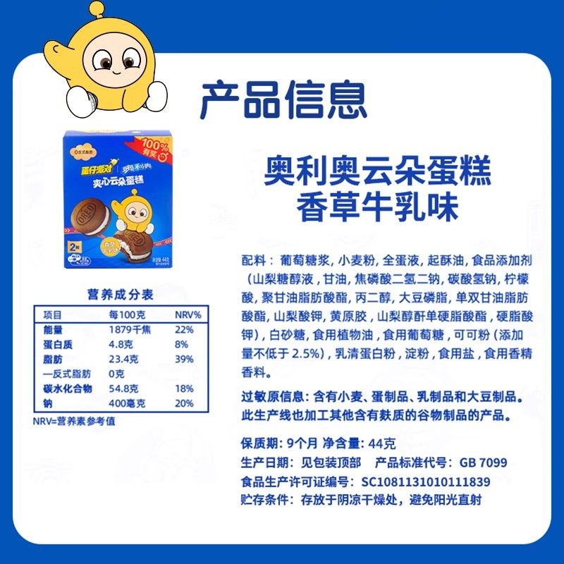 奥利奥云朵蛋糕44g盒装新日期