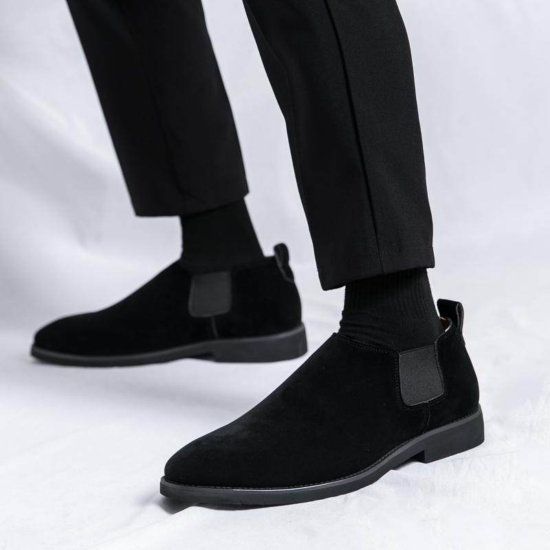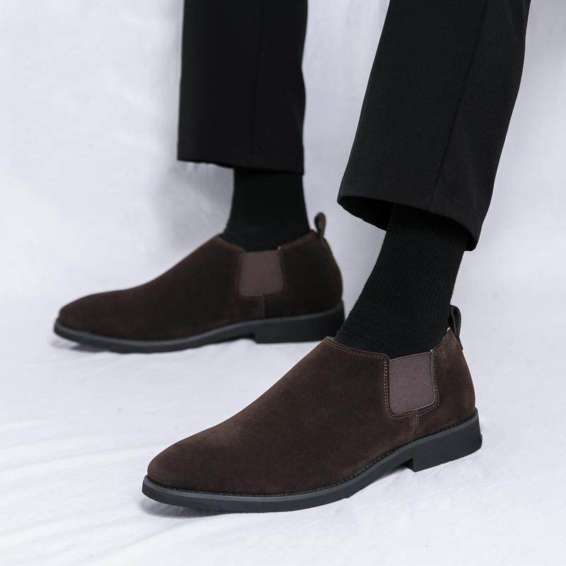 内增高男鞋懒人休闲皮鞋男韩版潮流切尔西靴英伦磨砂尖头反绒皮鞋