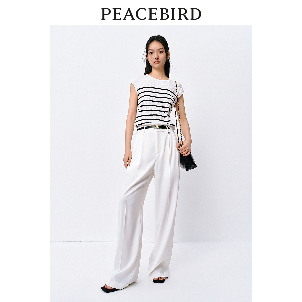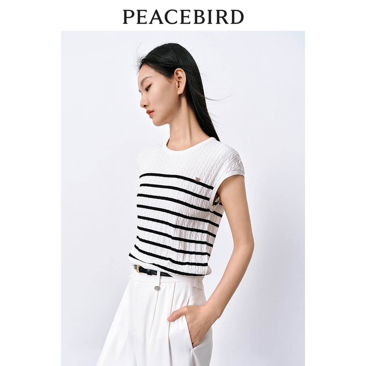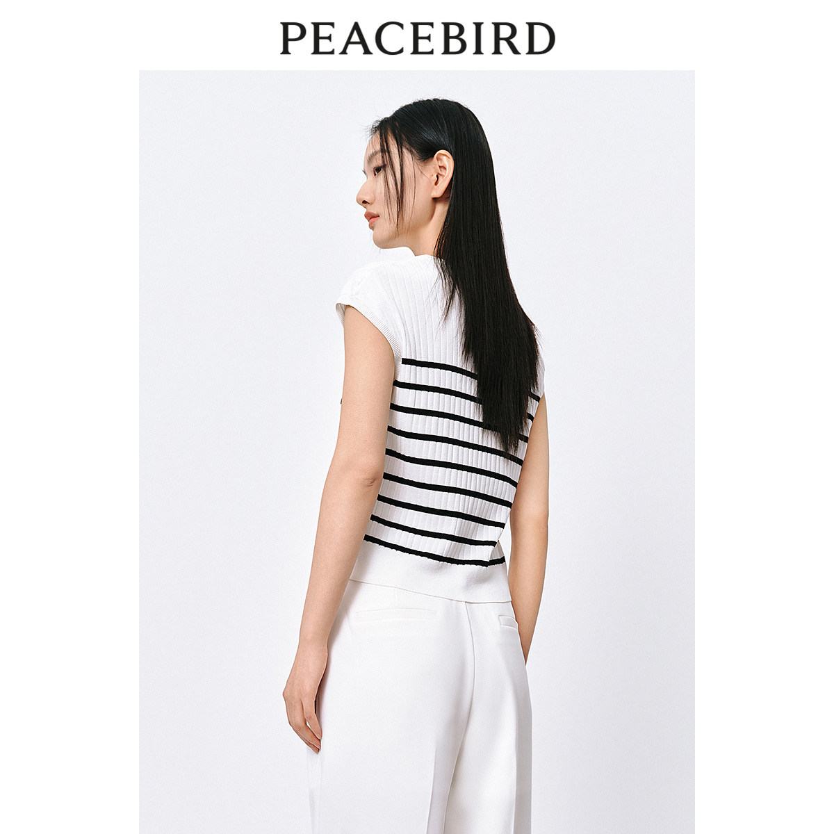 太平鸟百搭黑白条纹短袖针织衫女2024夏装新款线套衫品质通勤上衣