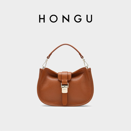 红谷女包真皮单肩斜挎包时尚马鞍包高级感手拎包6834