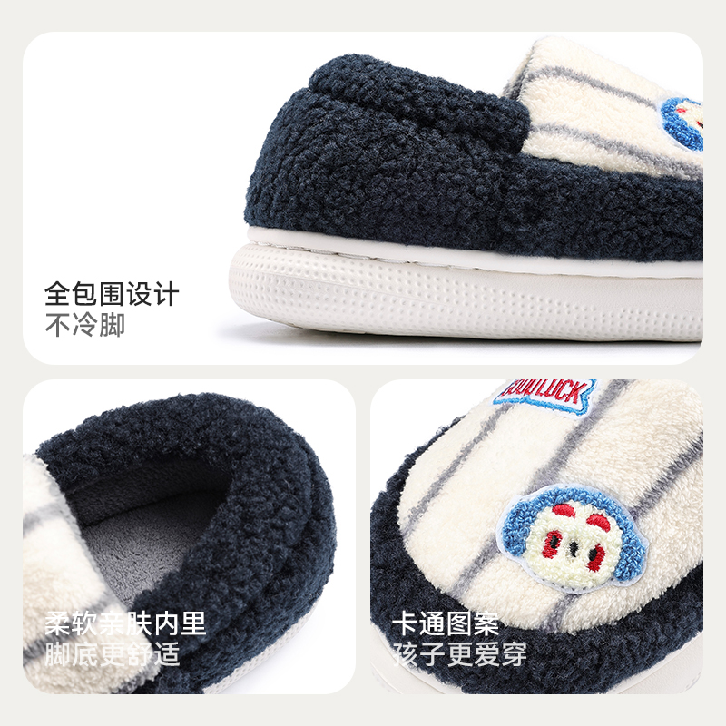幸福玛丽儿童棉拖鞋包跟秋冬男童中大童室内家居拖鞋男孩毛绒保暖