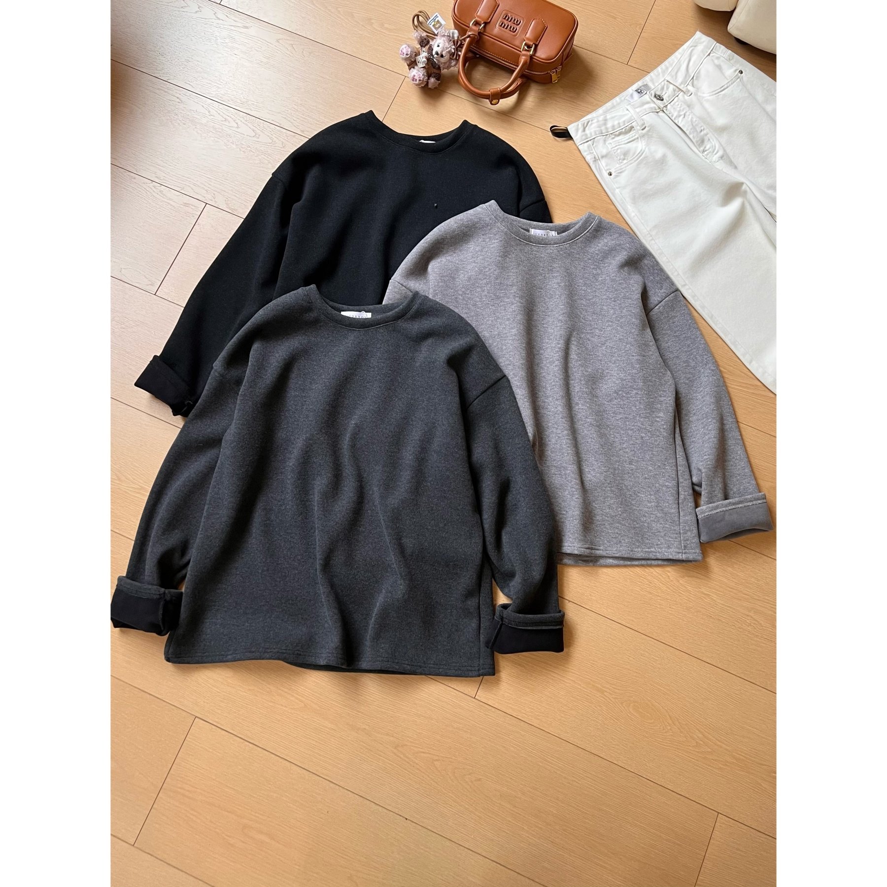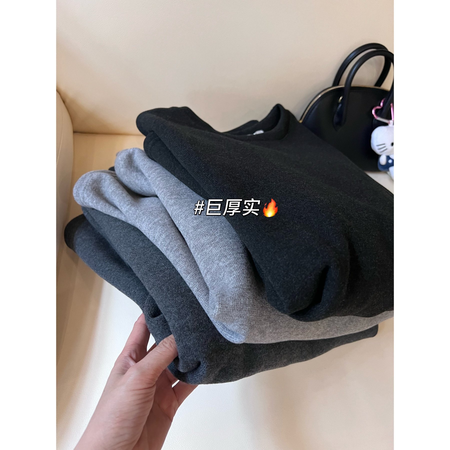 【加绒】J21极简风圆领磨毛德绒长袖打底衫上衣女季加厚保暖卫衣