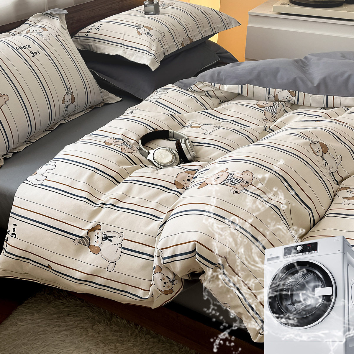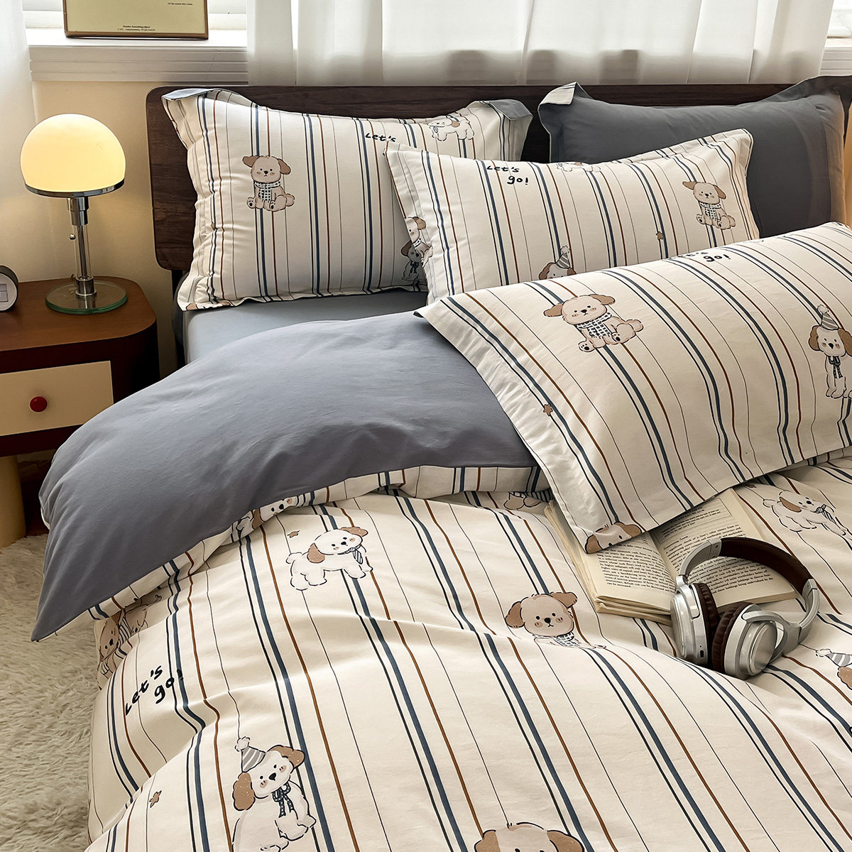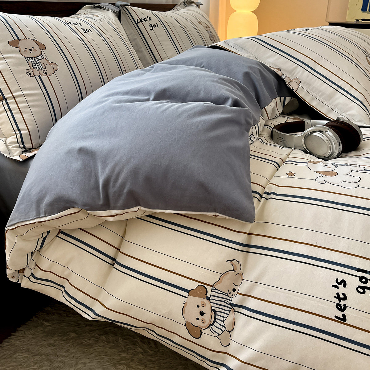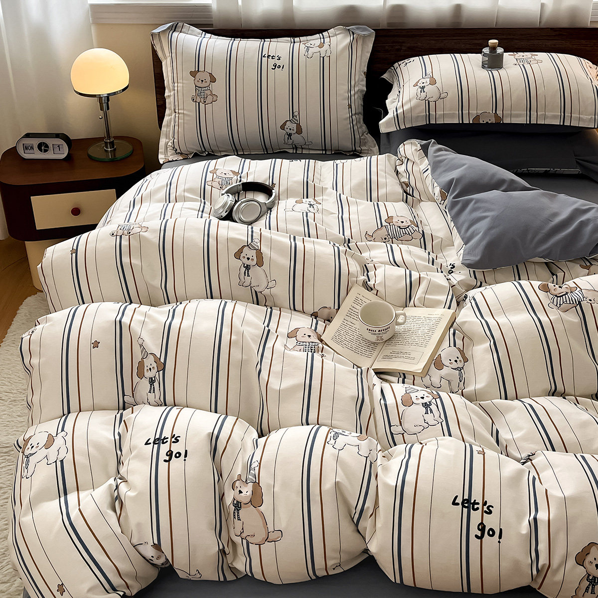 红豆全棉加厚磨毛床上四件套纯棉床单人被套罩学生宿舍三件套床笠