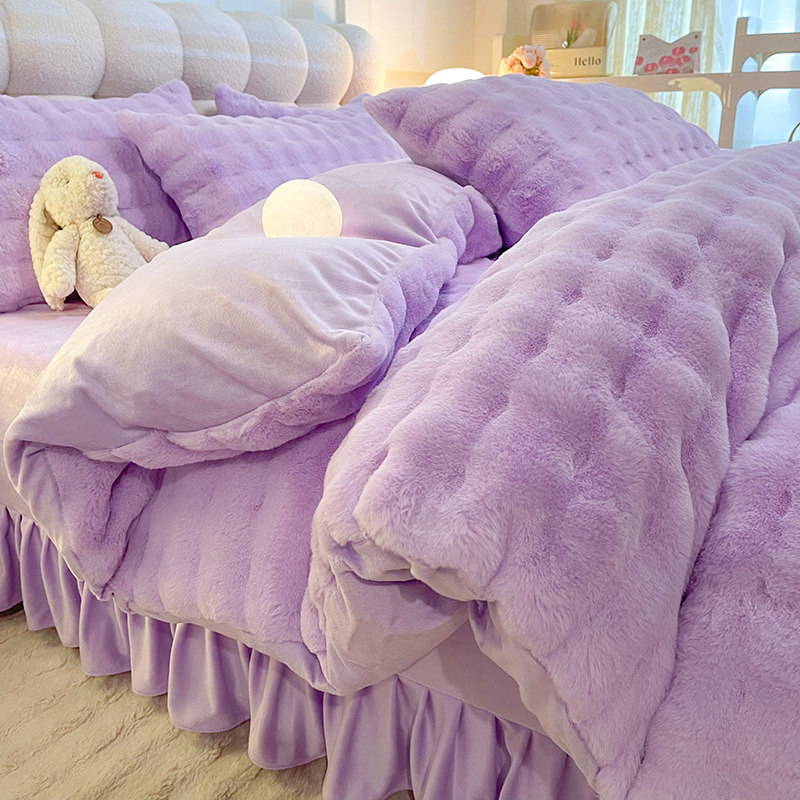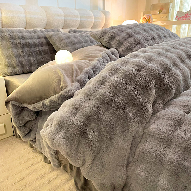 泡泡绒四件套保暖蓄热牛奶绒裸睡