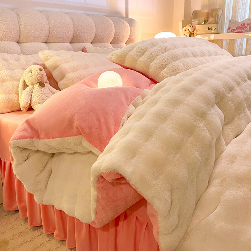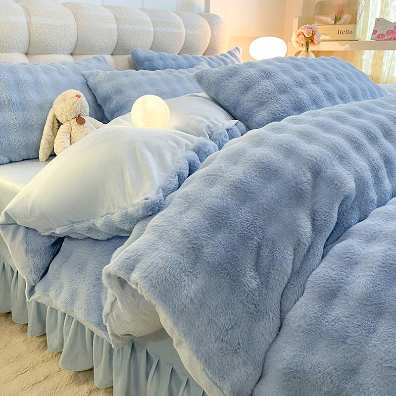 冬季泡泡绒四件套保暖蓄热牛奶绒裸睡被罩亲肤双面珊瑚加厚宝宝绒