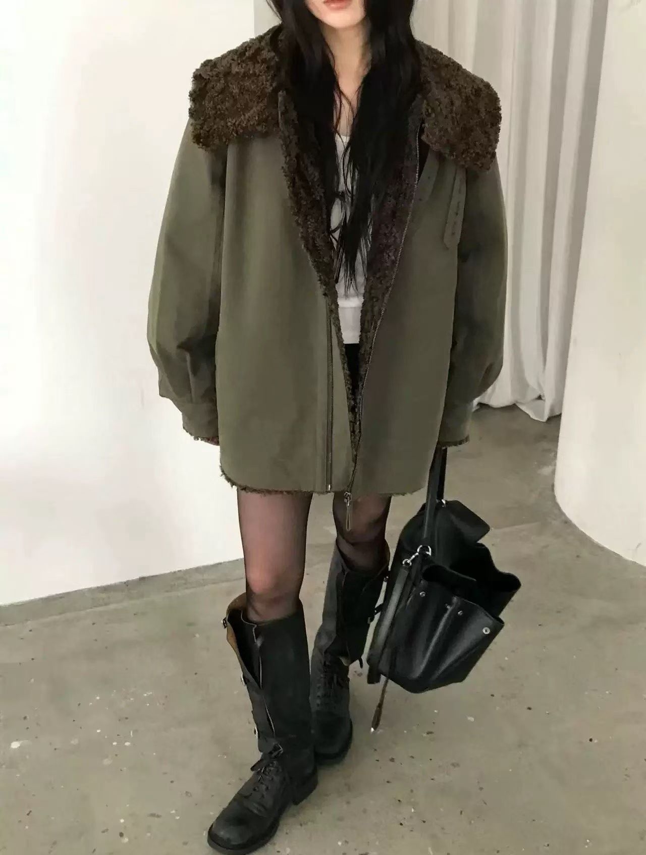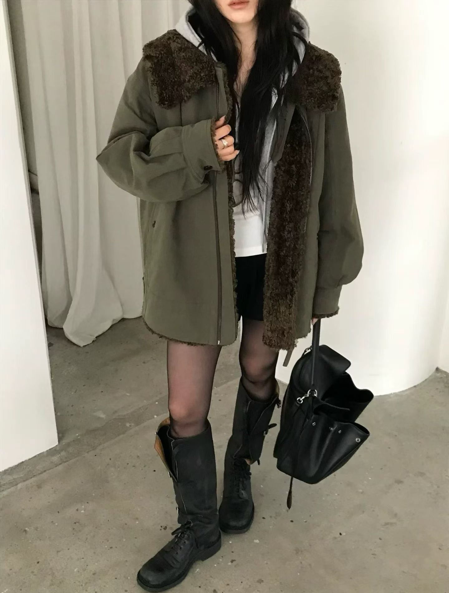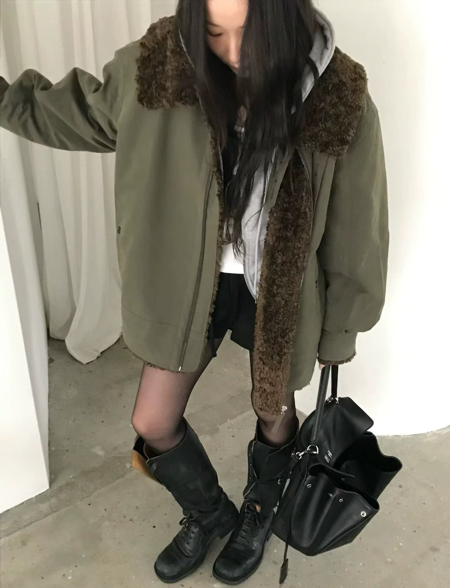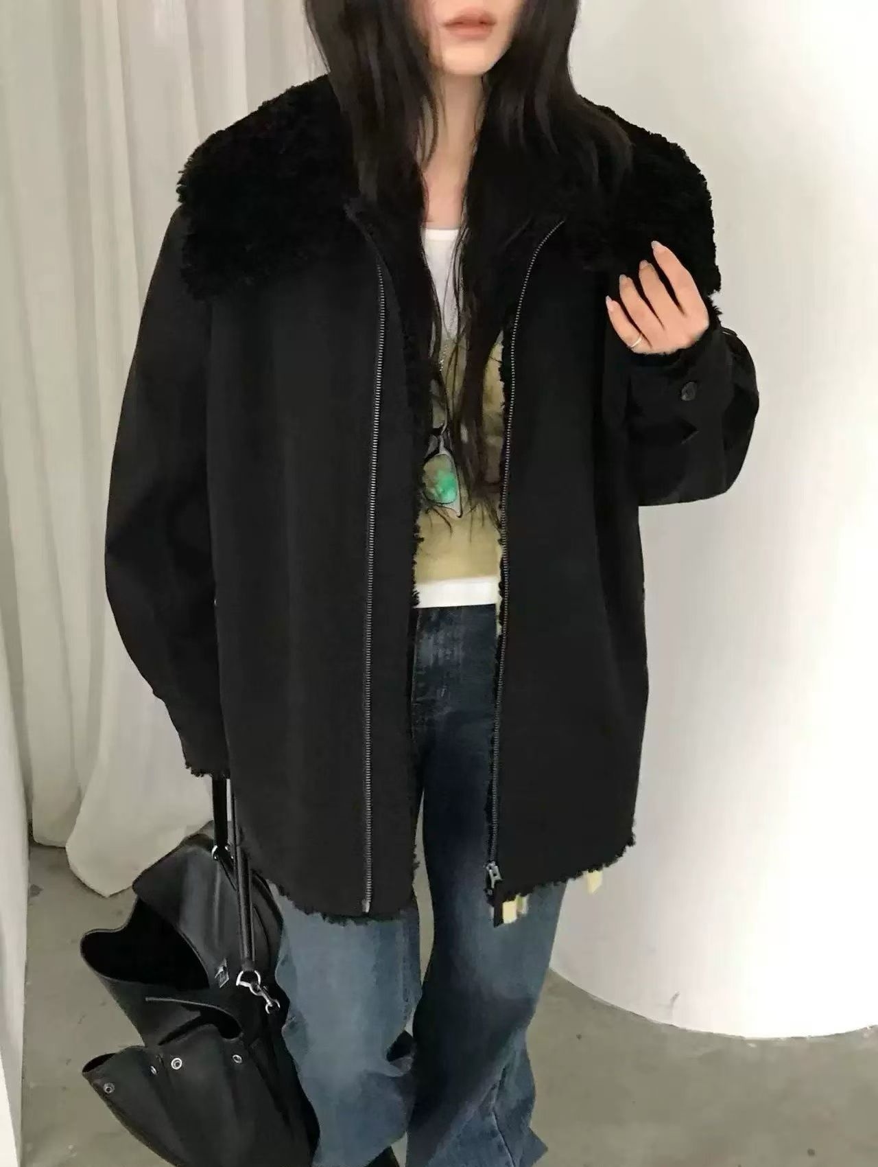 NUESE羊羔毛内胆棉服外套女2025冬季新款韩国东大门宽松工装夹克