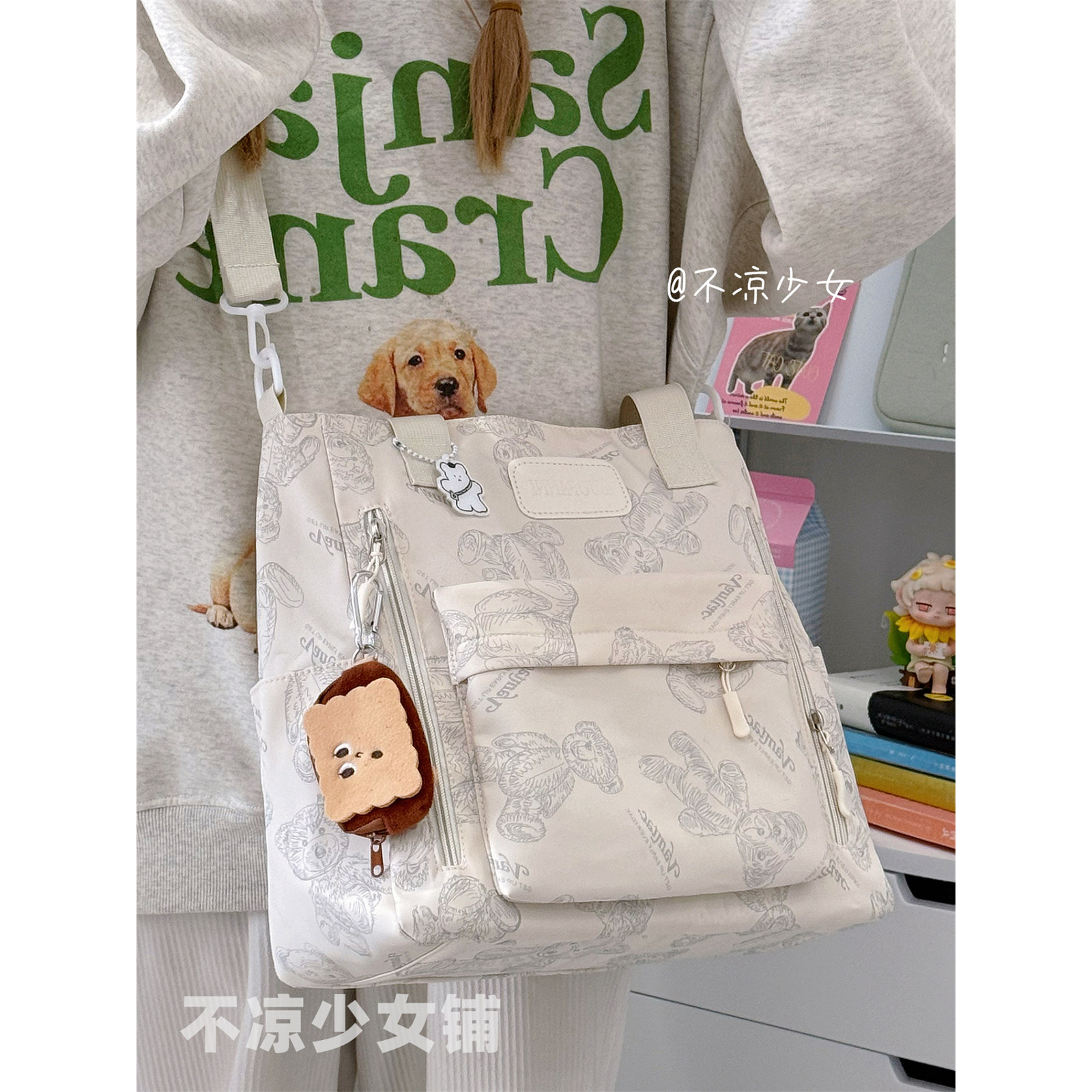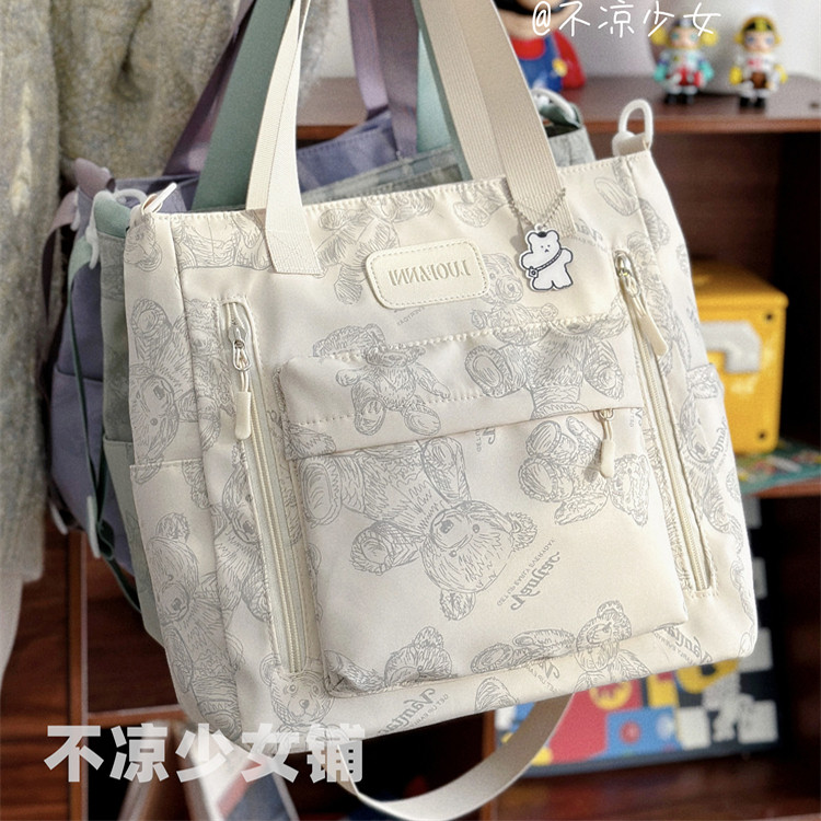 大容量通勤单肩包日系ins可爱小熊复古托特包学生上课补习斜挎包