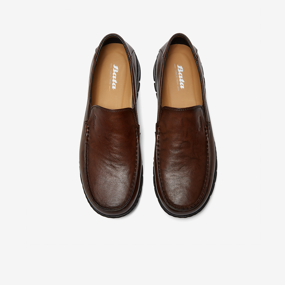 Bata乐福鞋男牛皮商务通勤一脚蹬
