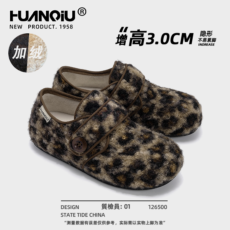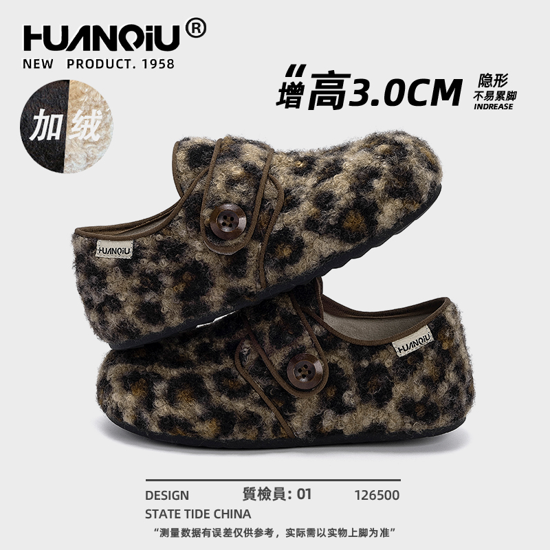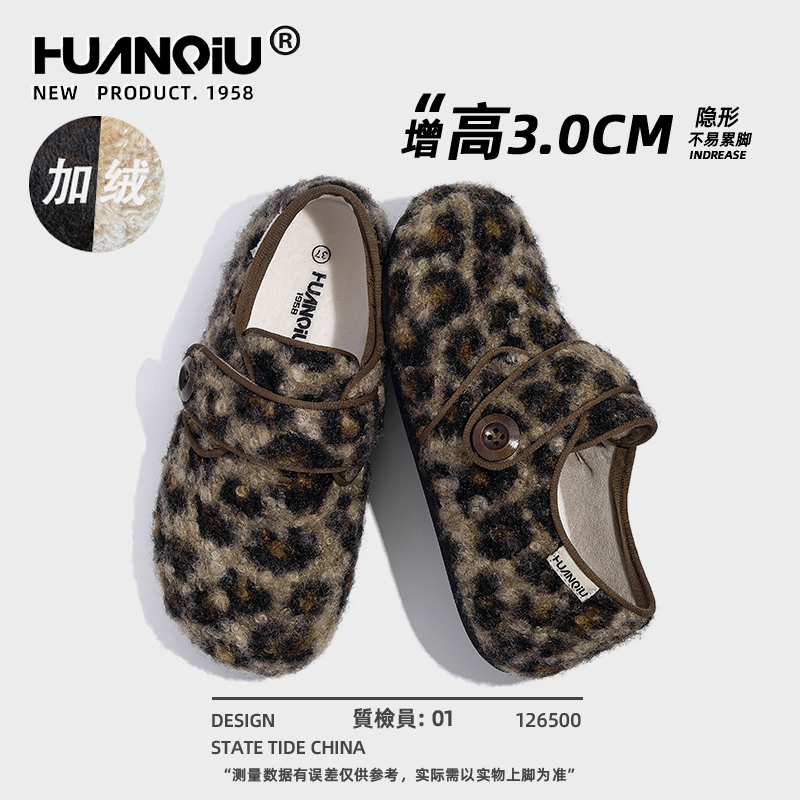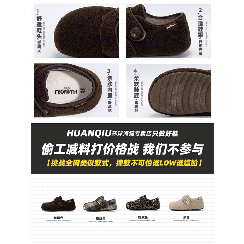环球豹纹加绒毛毛勃肯鞋女新款冬季保暖魔术贴鞋子百搭休闲二棉鞋