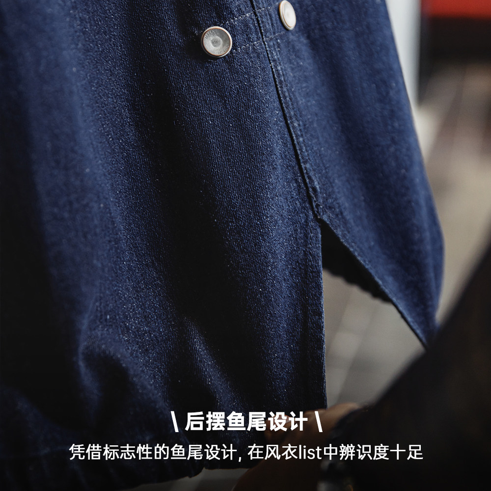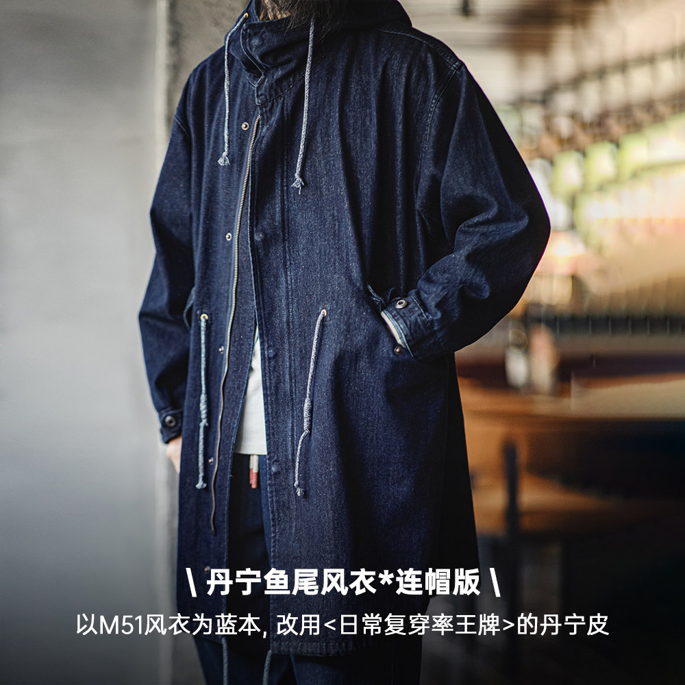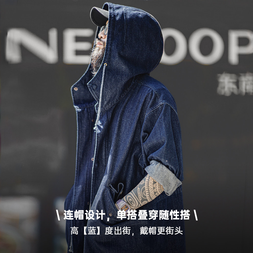 马登工装 美式复古M51丹宁牛仔鱼尾风衣宽松中长款连帽外套男秋