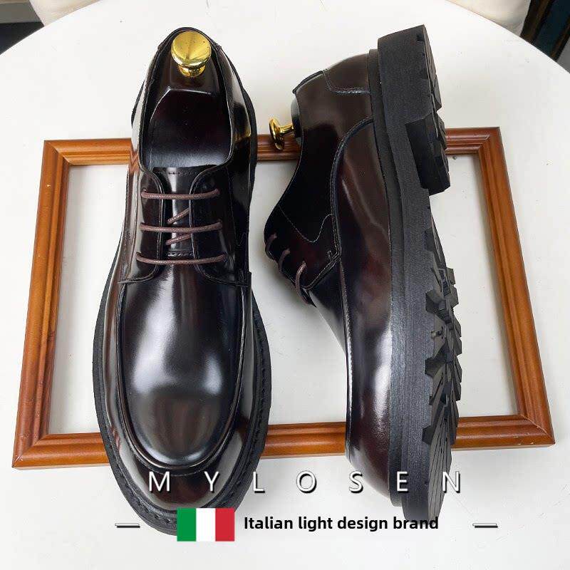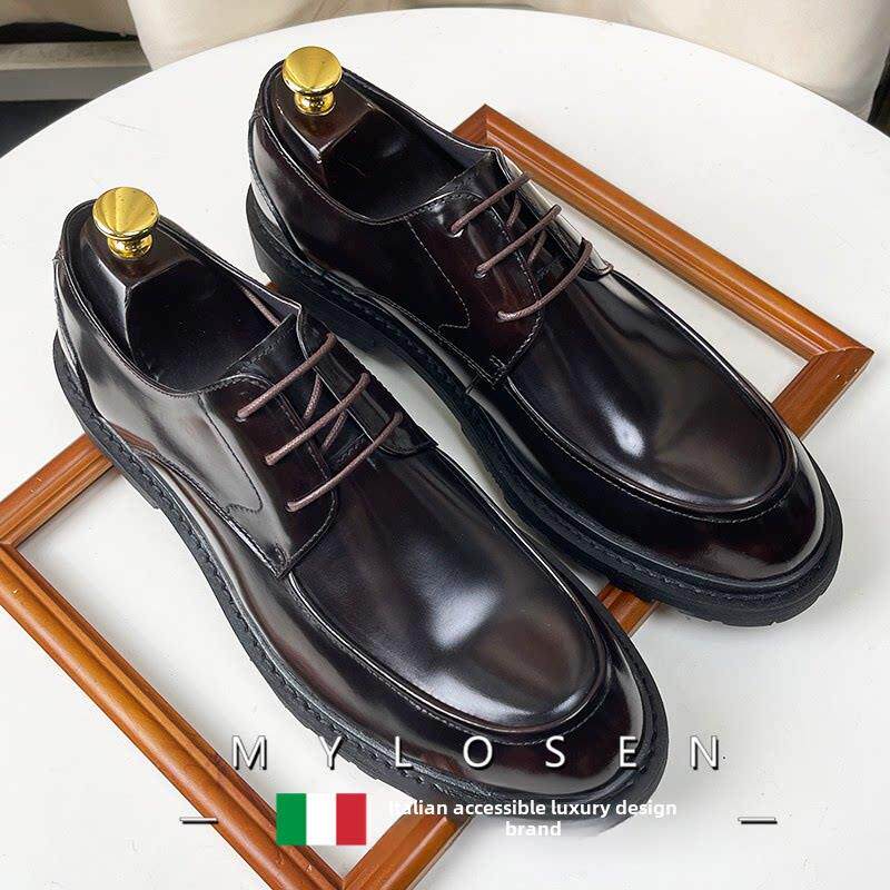 迈洛森男士皮鞋结婚新郎简约商务正装真皮大头男鞋圆头漆皮德比鞋