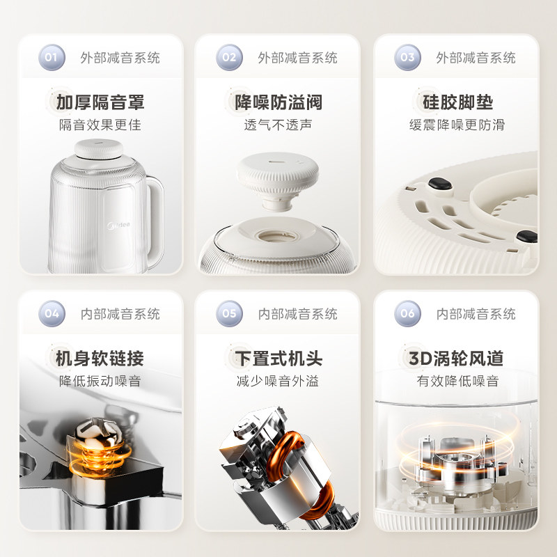 美的破壁机家用全自动无渣多功能豆浆料理榨汁一体轻音2025新款静