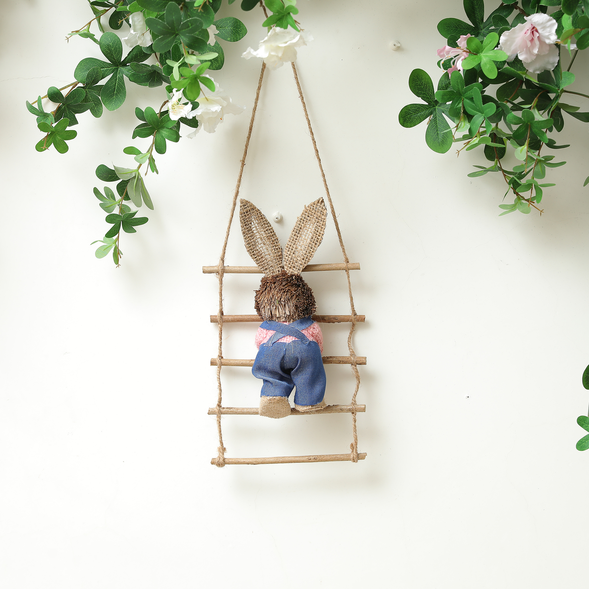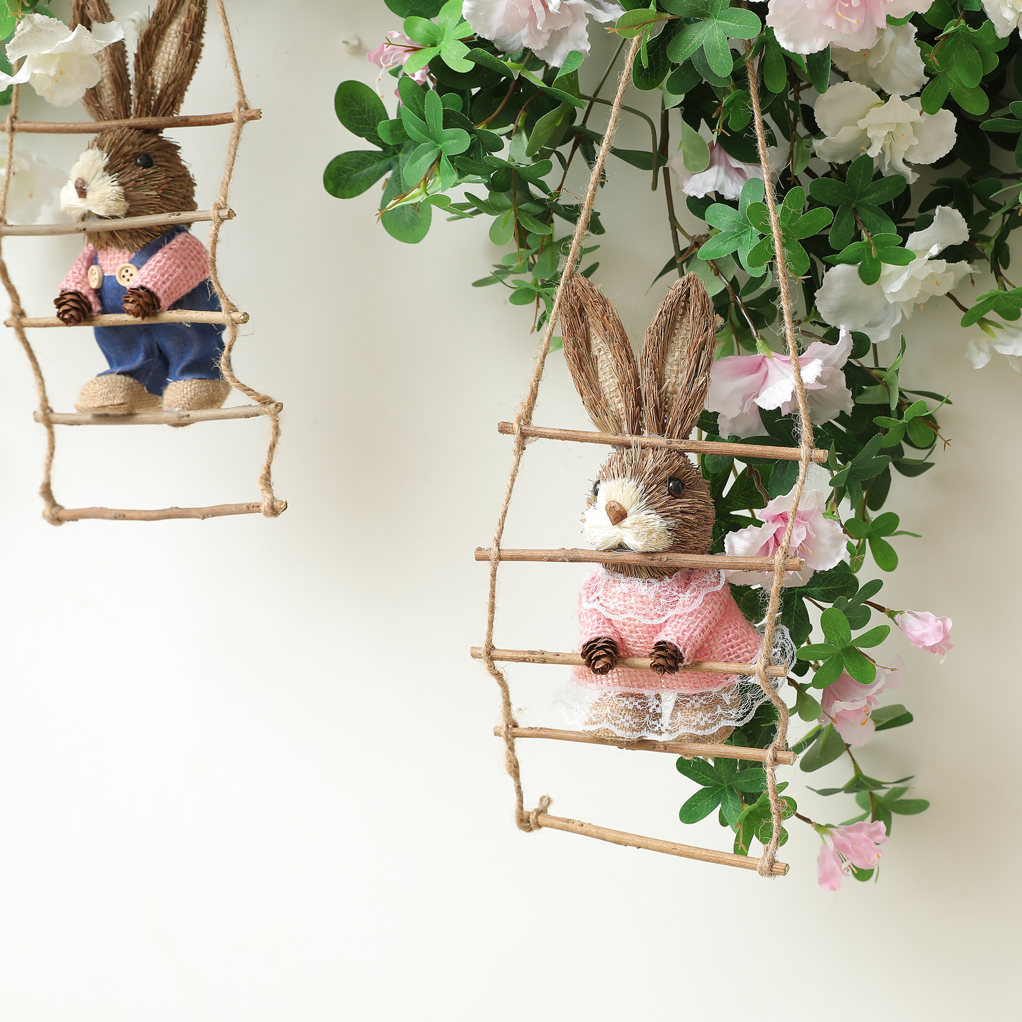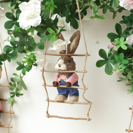草编兔子摆件幼儿园吊饰装饰空中森系植物角挂件户外布置墙上壁挂