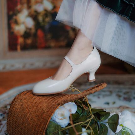 奈里小众法式复古白色少女赫本高脚背玛丽珍高跟鞋百搭旗袍鞋单鞋