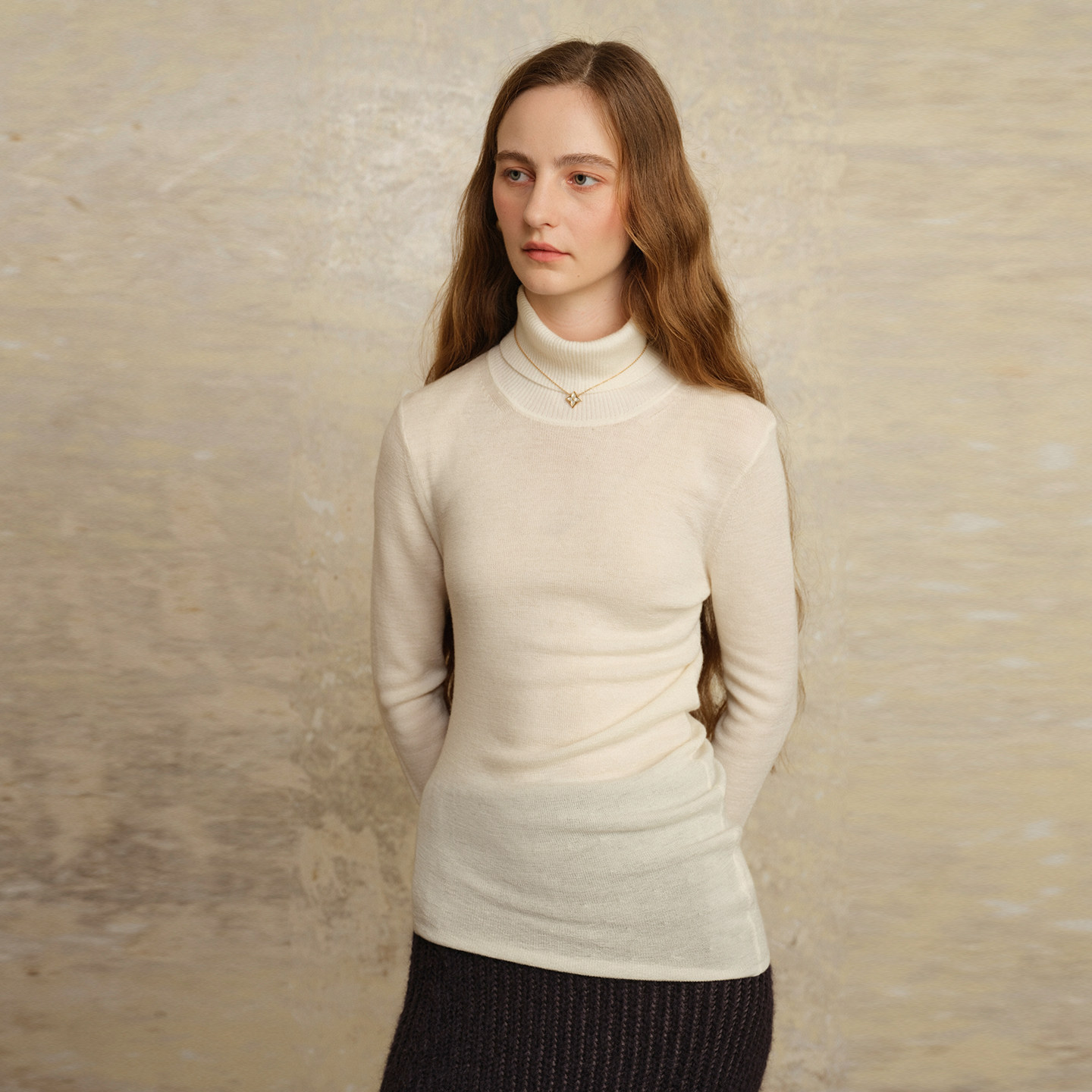 竹依依 白色/黑色100%绵羊毛套头毛衣女冬针织衫