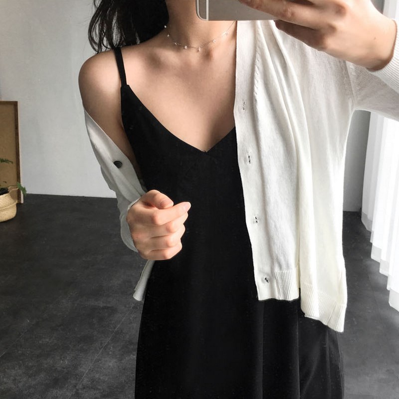 黑色V领长款细肩带吊带A字宽松打底衬裙背心连衣裙脚踝长裙女春夏