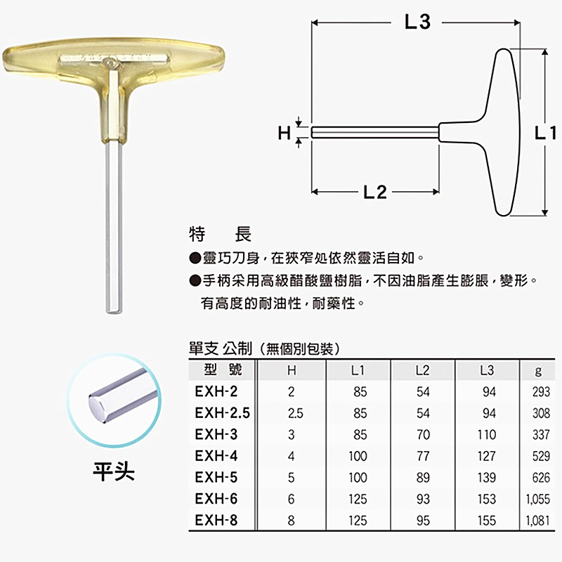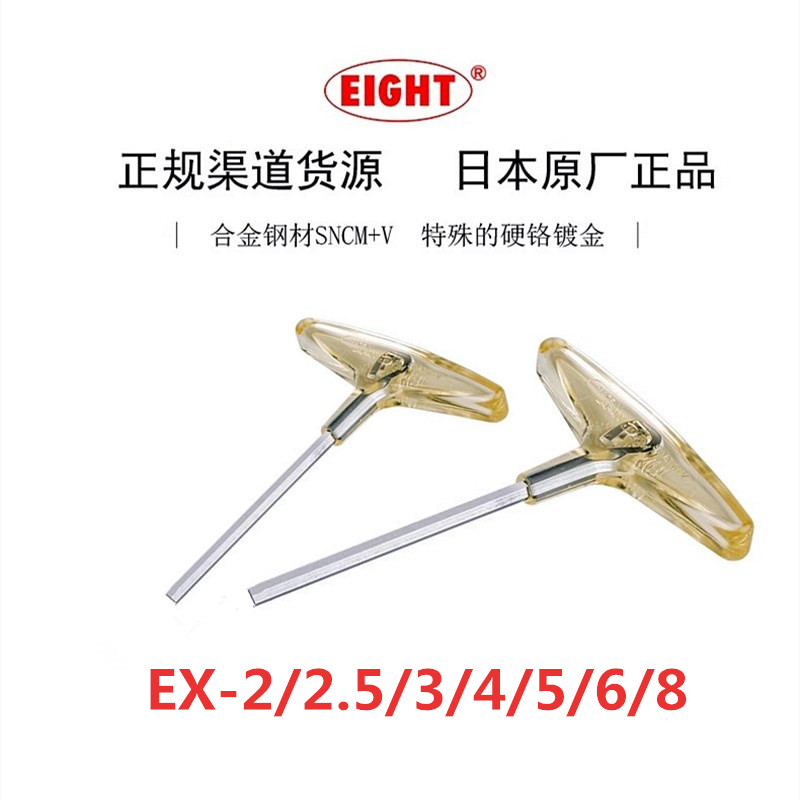 进口日本EIGHT百利T型内六扳手平头圆头加硬六方六角匙EXH EXT