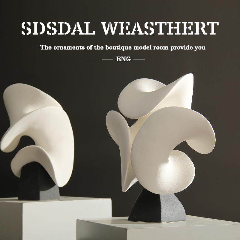 现代简约手工陶瓷黑白创意旋转扭曲花器摆件桌面客厅酒店样板间