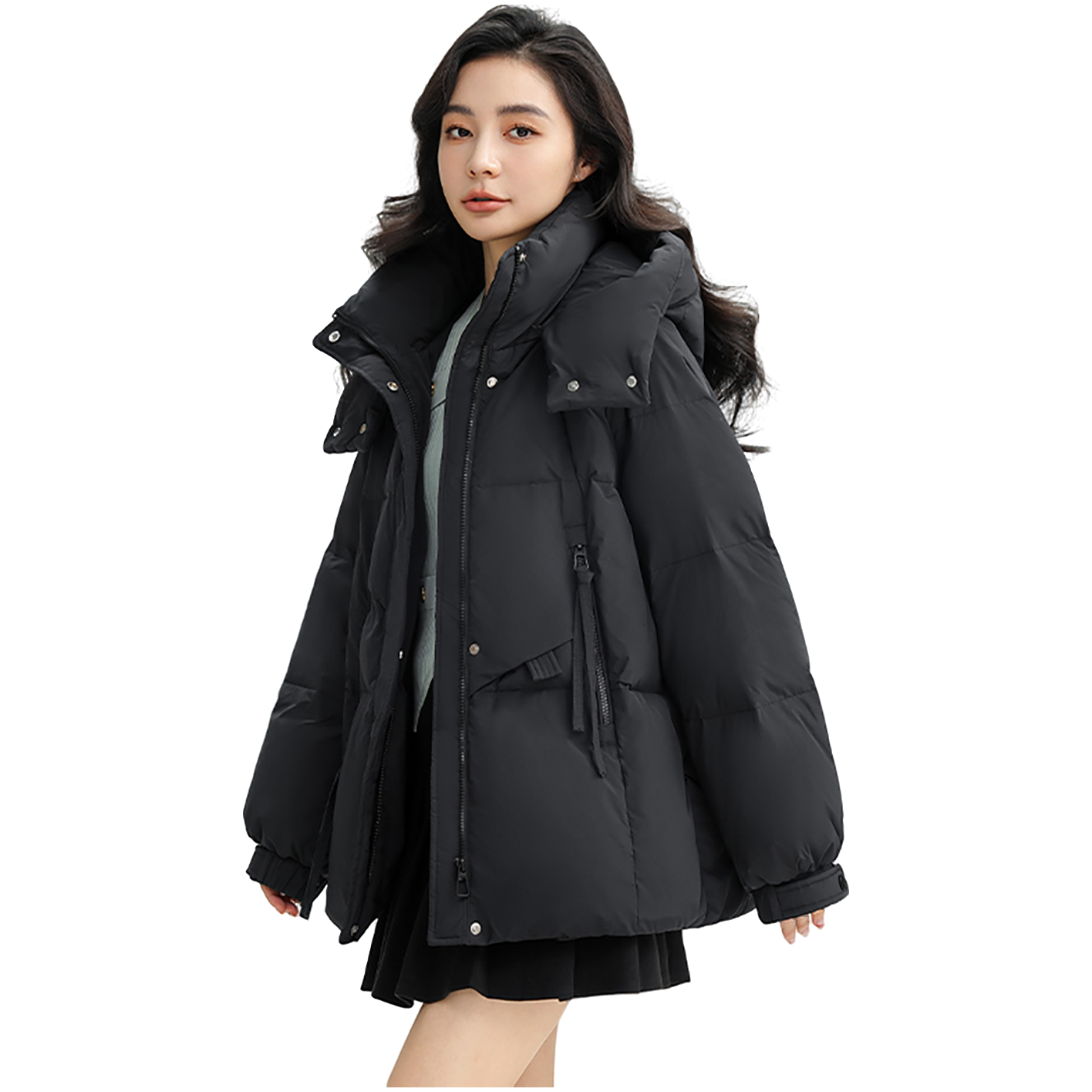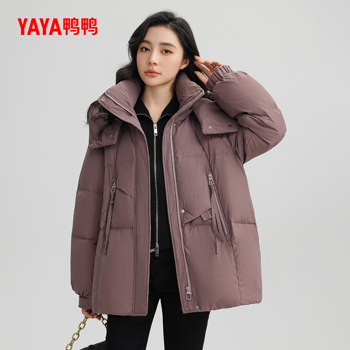 鸭鸭羽绒服女士2024冬季新品短款连帽可拆百搭宽松厚保暖鸭绒外套
