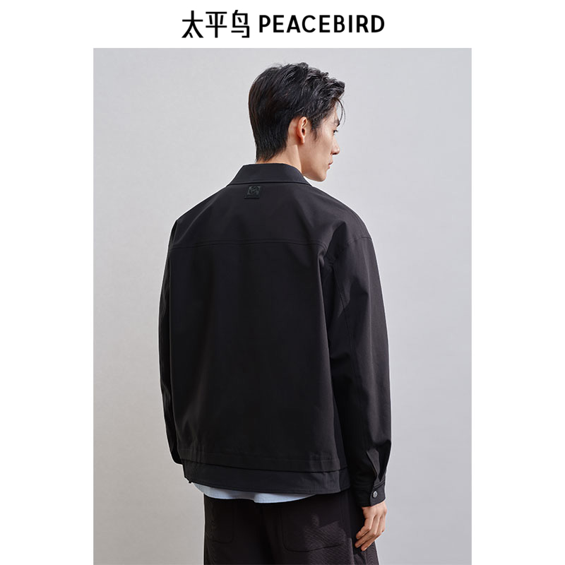 太平鸟男装商务行政夹克秋新款拼接巴恩风cleanfit休闲茄克外套Y