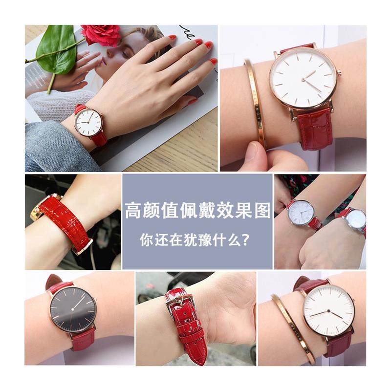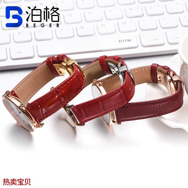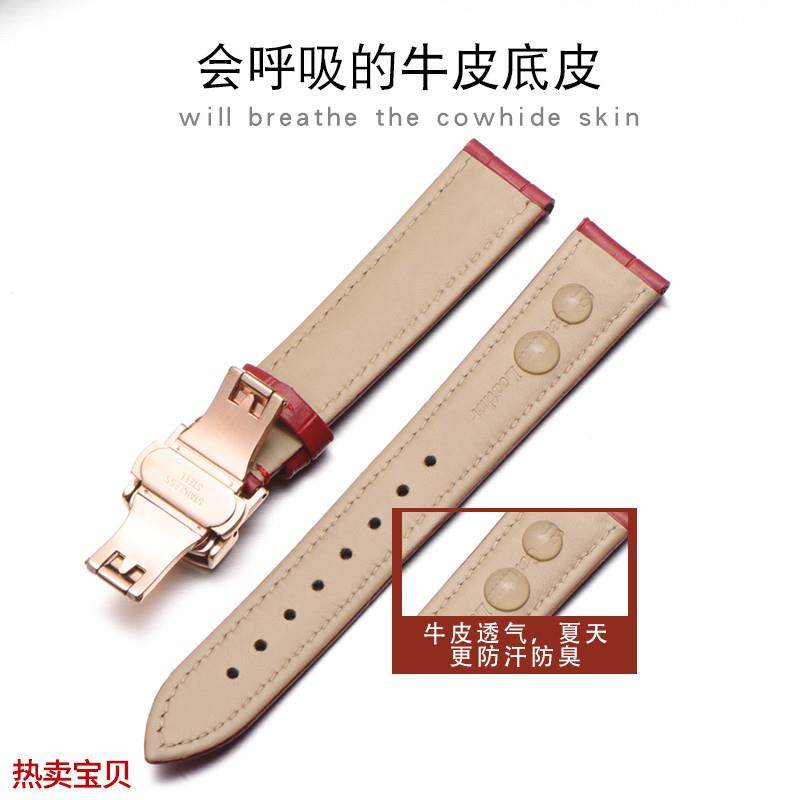 适用原装手表带女士真皮表带浪琴天梭dw卡西欧蝴蝶扣红色表带手表