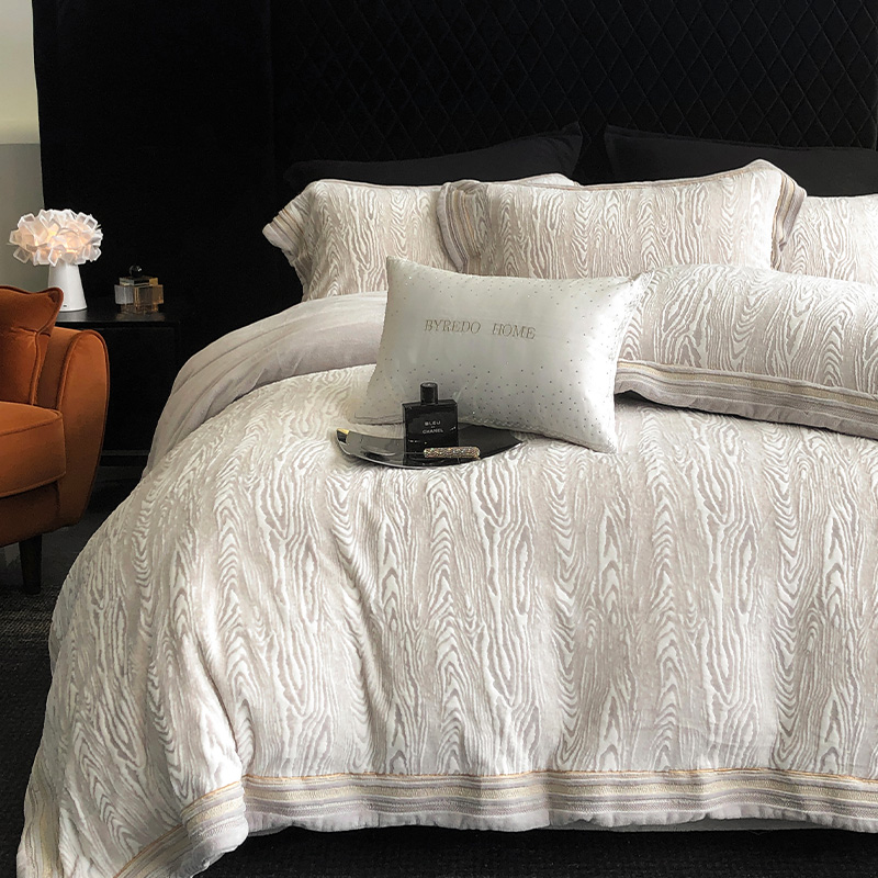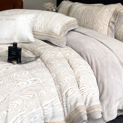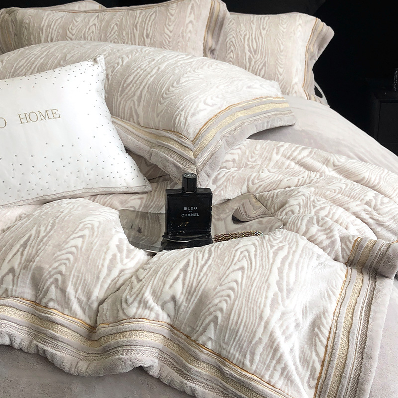 轻奢加厚秋冬保暖绒四件套雕花绒刺绣花边床单被套双人床上用品