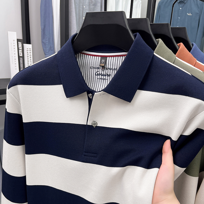 啄木鸟新疆长绒棉男士长袖polo衫条纹翻领T恤秋冬季上衣宽松男装