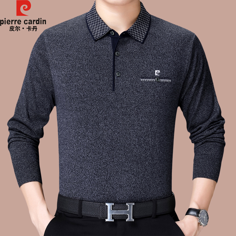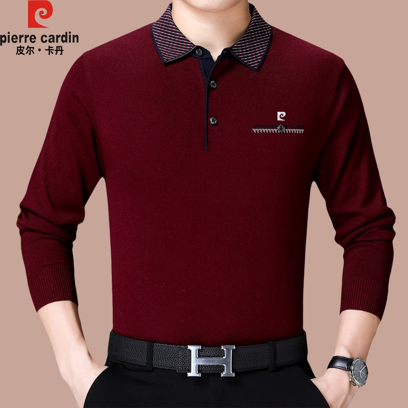 皮尔卡丹男士加厚羊毛衫冬季翻领保暖本命年毛衣中老年纯色打底衫