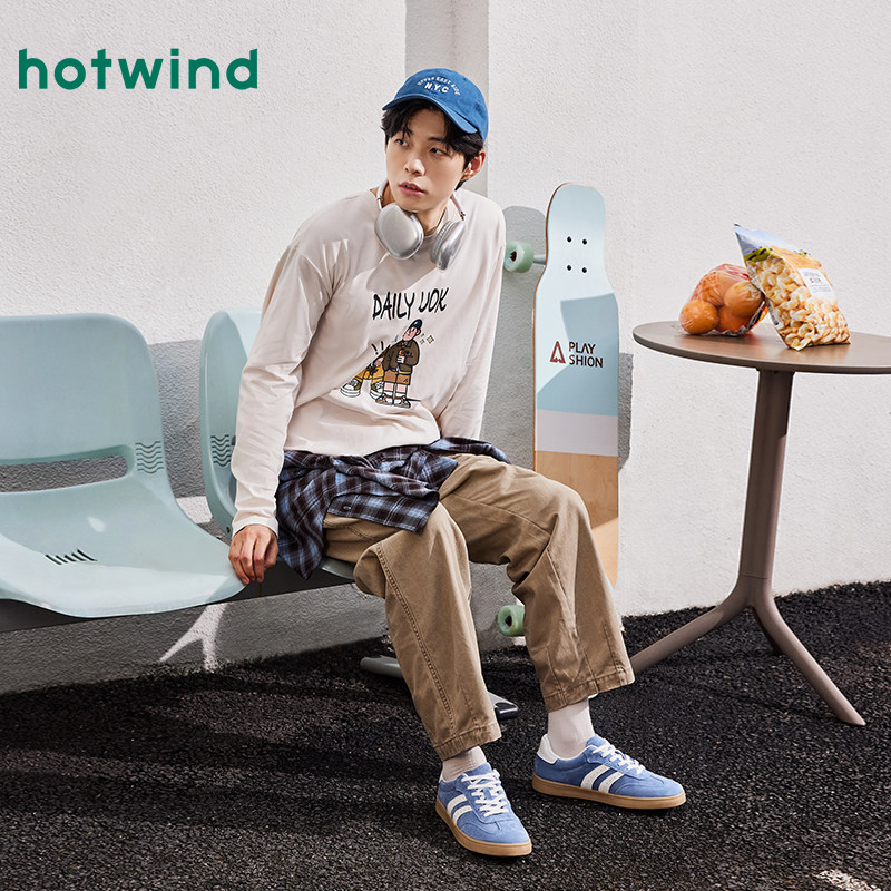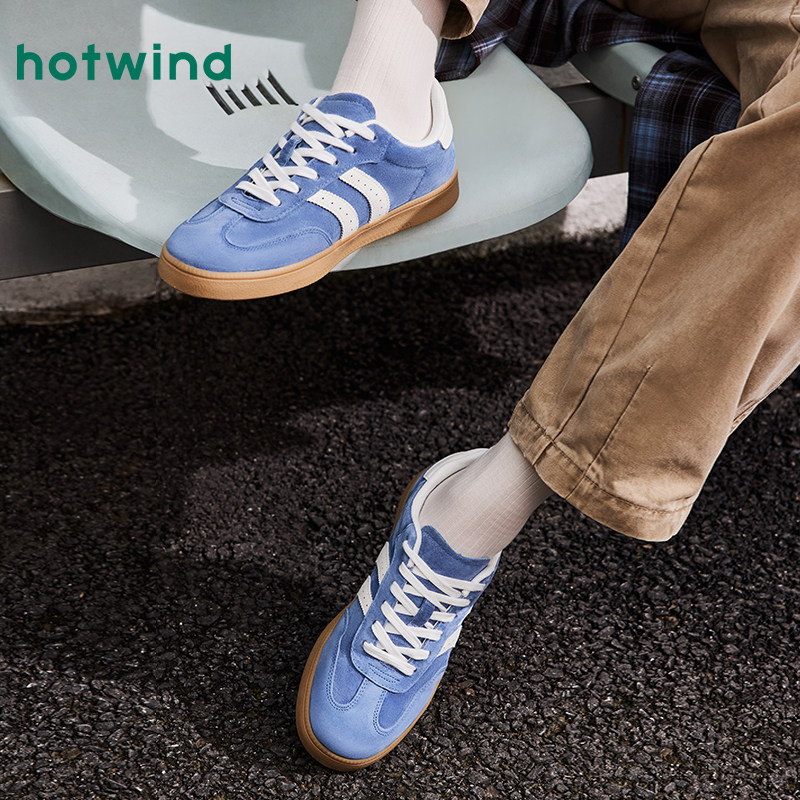 热风秋季新款男士复古运动休闲板鞋拼色圆头德训鞋阿甘男鞋