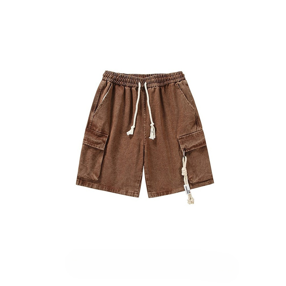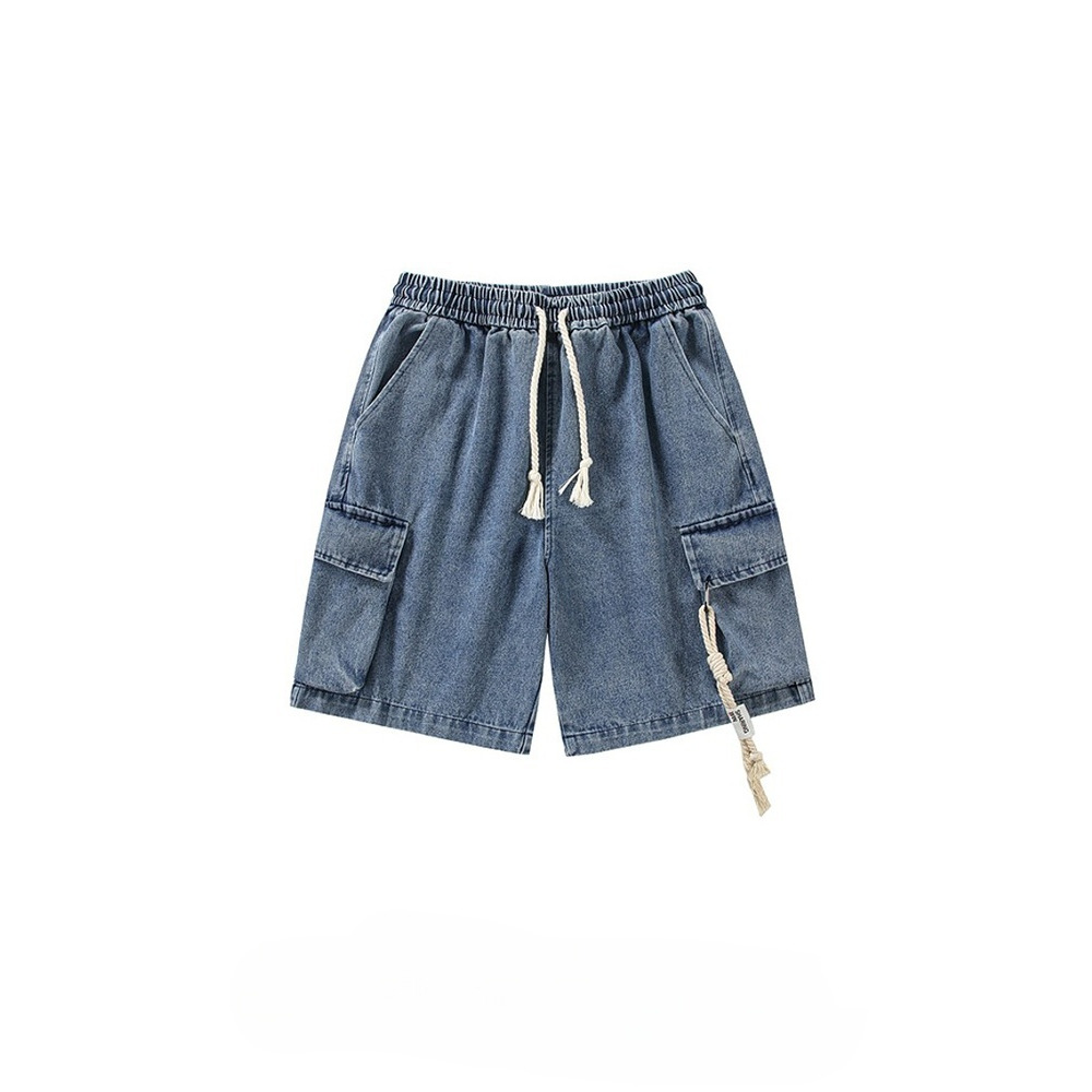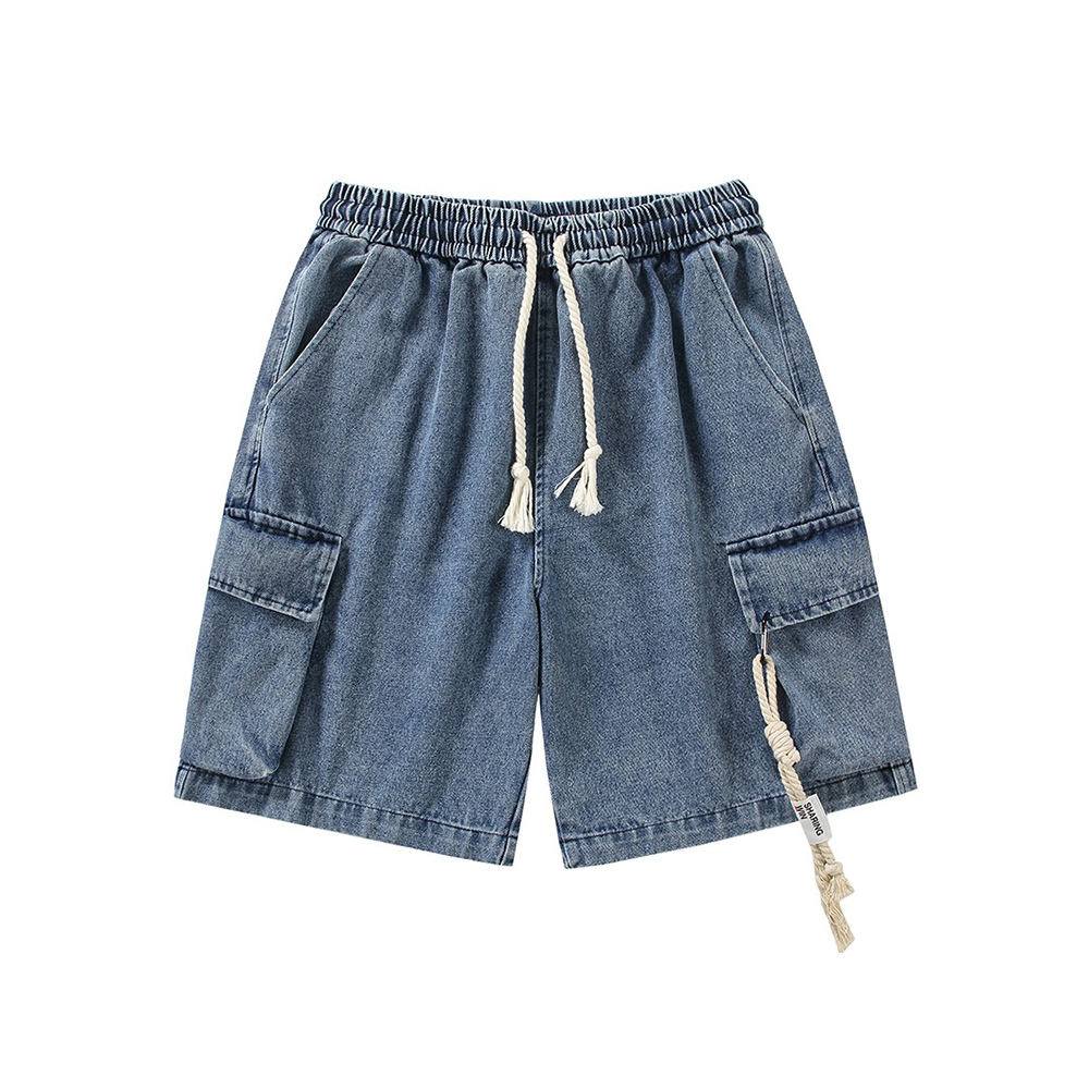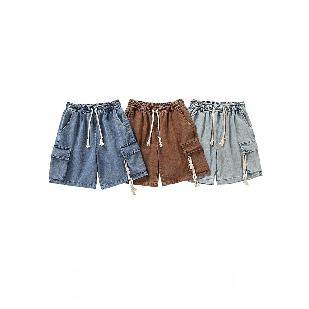 夏季潮牌做旧水洗工装牛仔短裤男2025新款复古宽松百搭阔腿五分裤