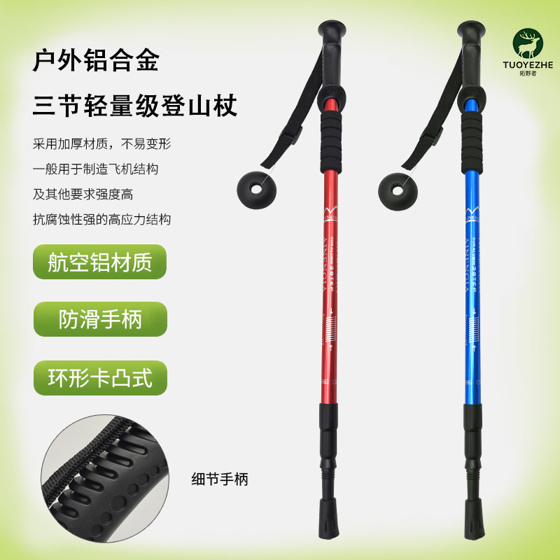 户外装备旅游铝合金登山杖手杖超轻折叠可伸缩直柄爬山棍徒步用品