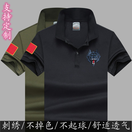 军强夏季运动速干体能透气翻领T恤男中国刺绣狼头短袖polo衫定制