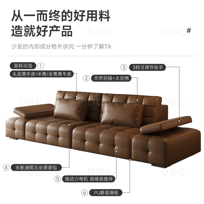 焕新补贴DDC意式劳伦斯电动多功能伸缩加厚头层牛皮零靠墙沙发床